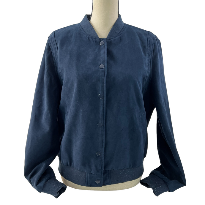 Faux Suede Bomber Jacket Navy Blue Size 16