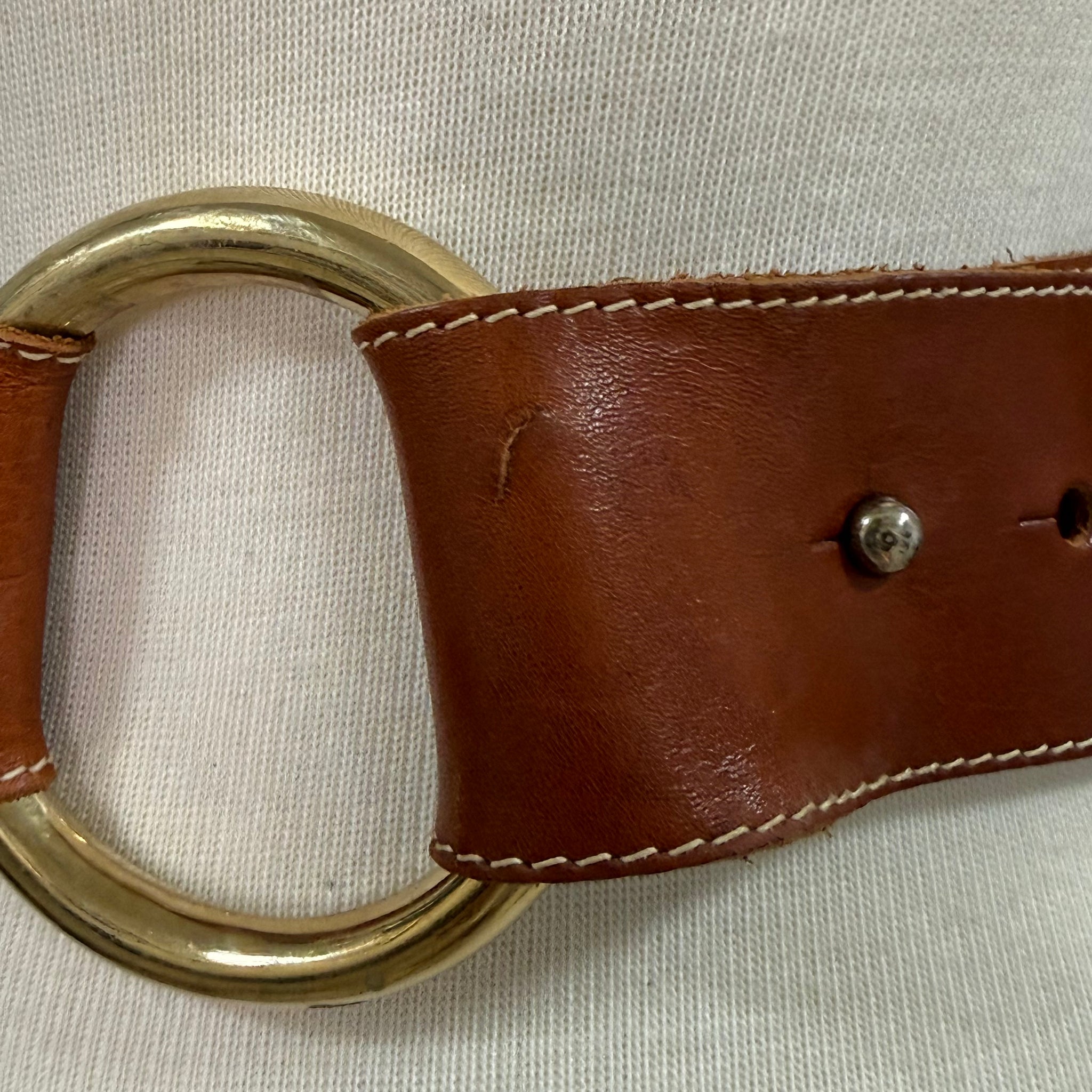 90s Tan Leather Gold Buckle Wide Cinch Belt XS