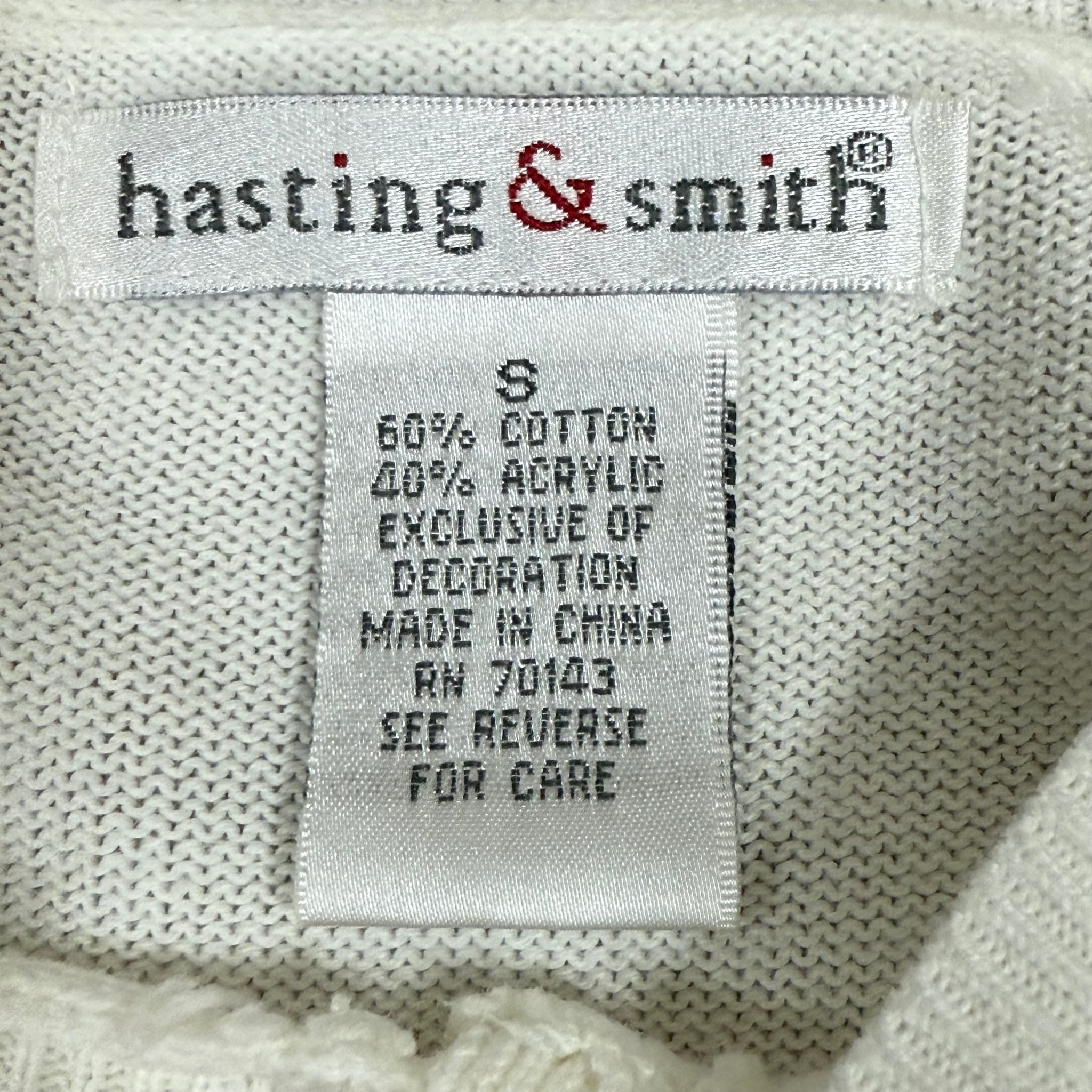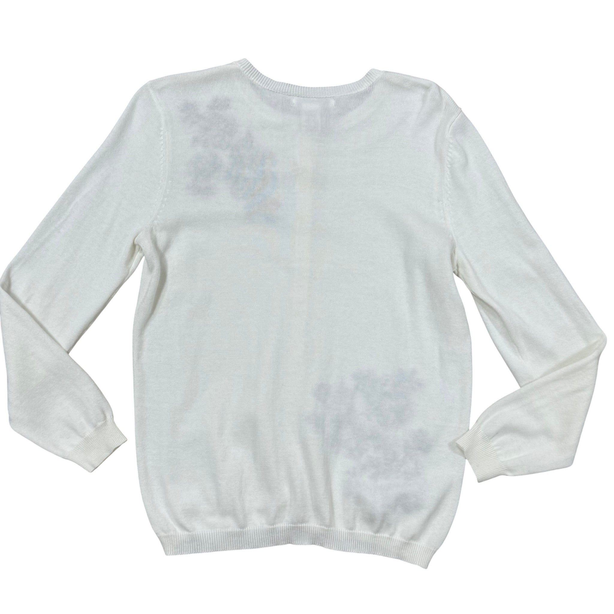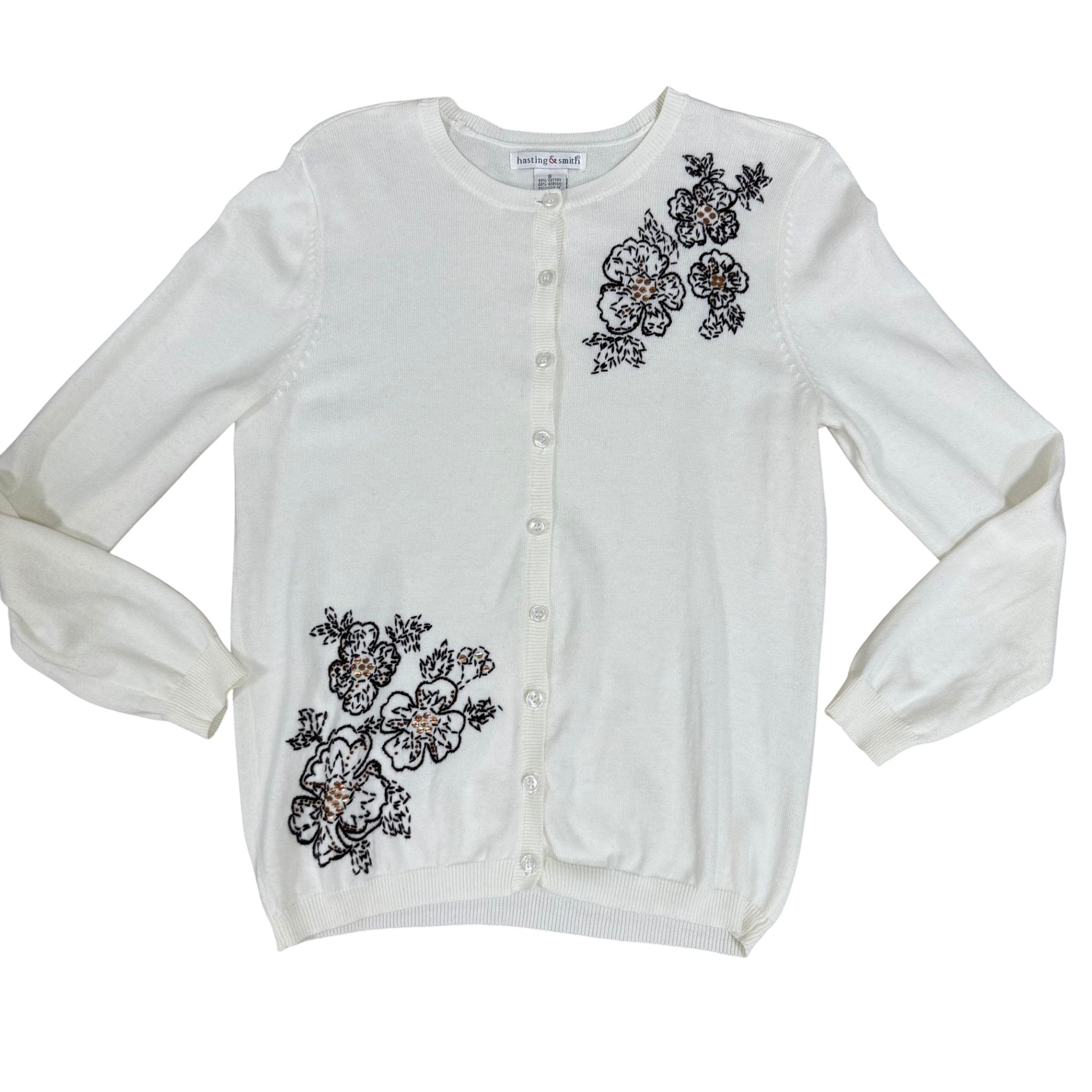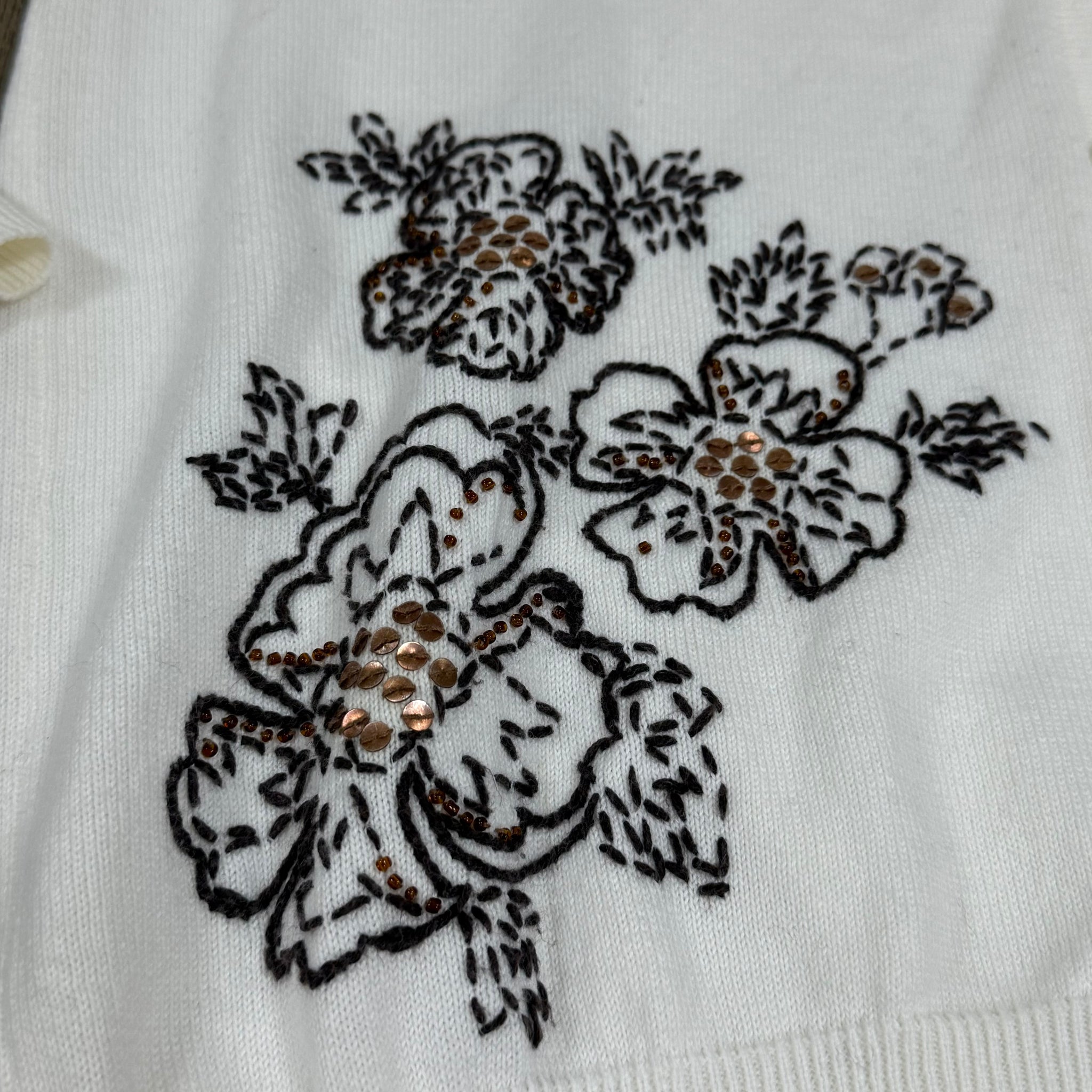 VTG 90s White Knit Floral Embroidered Cardigan Sweater Size S