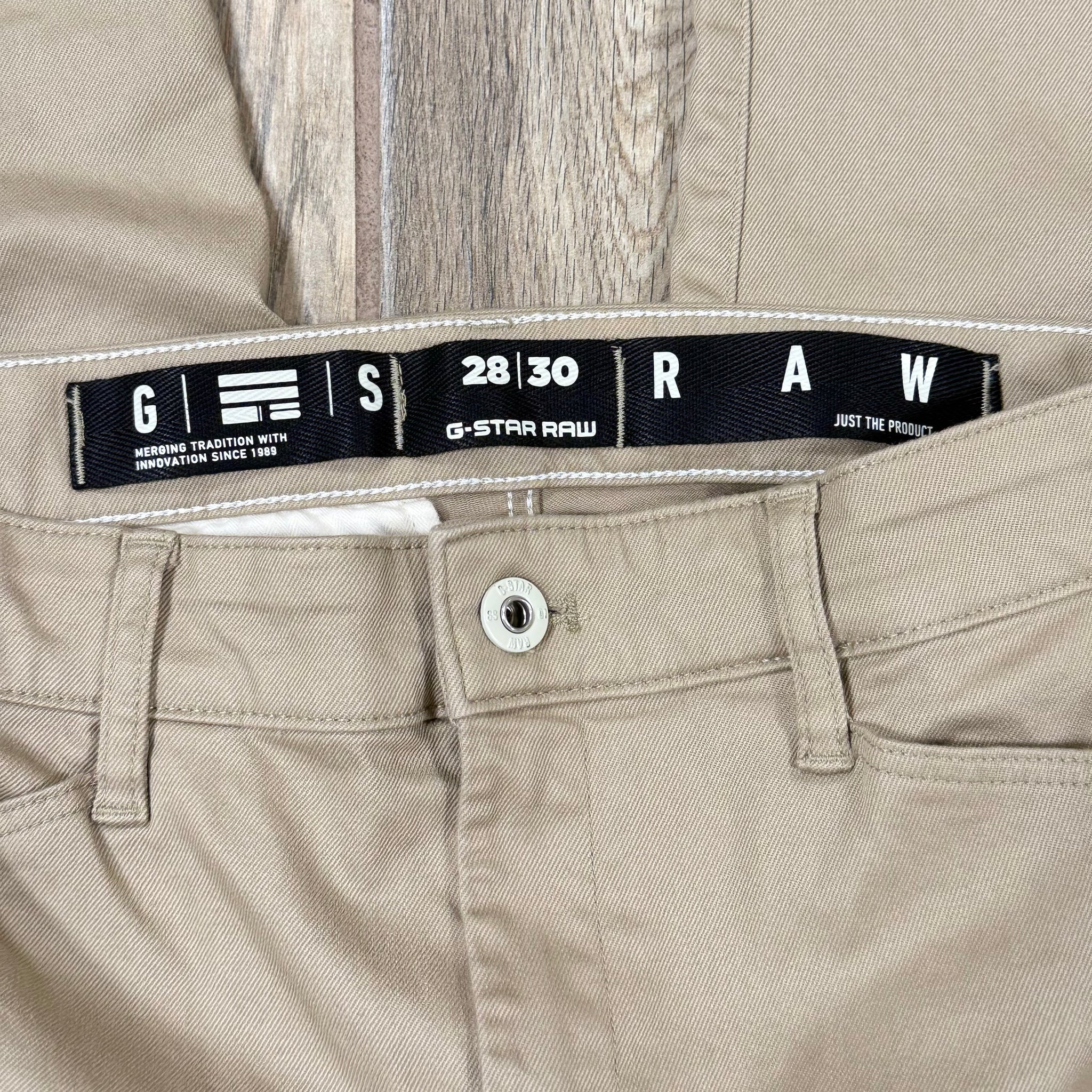 Slim-fit G-Star RAW khaki pants with durable cotton stretch construction and modern utility styling.