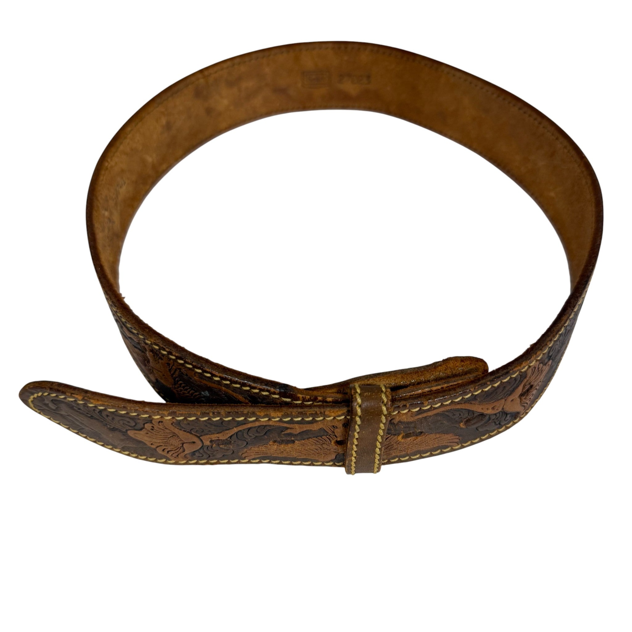 Sears Eagle Tooled Leather Belt (USA) Size 32. Width 1 5/8"
