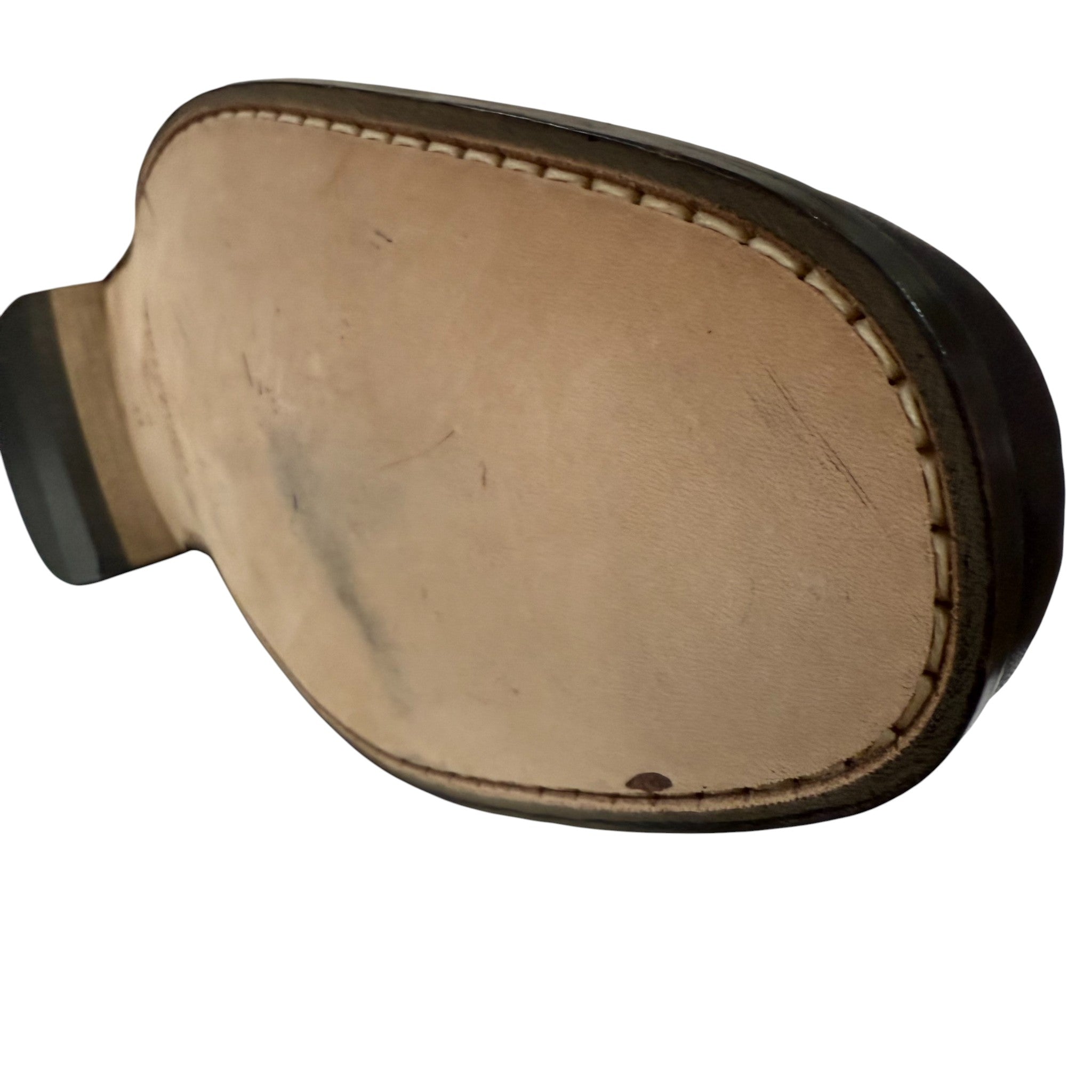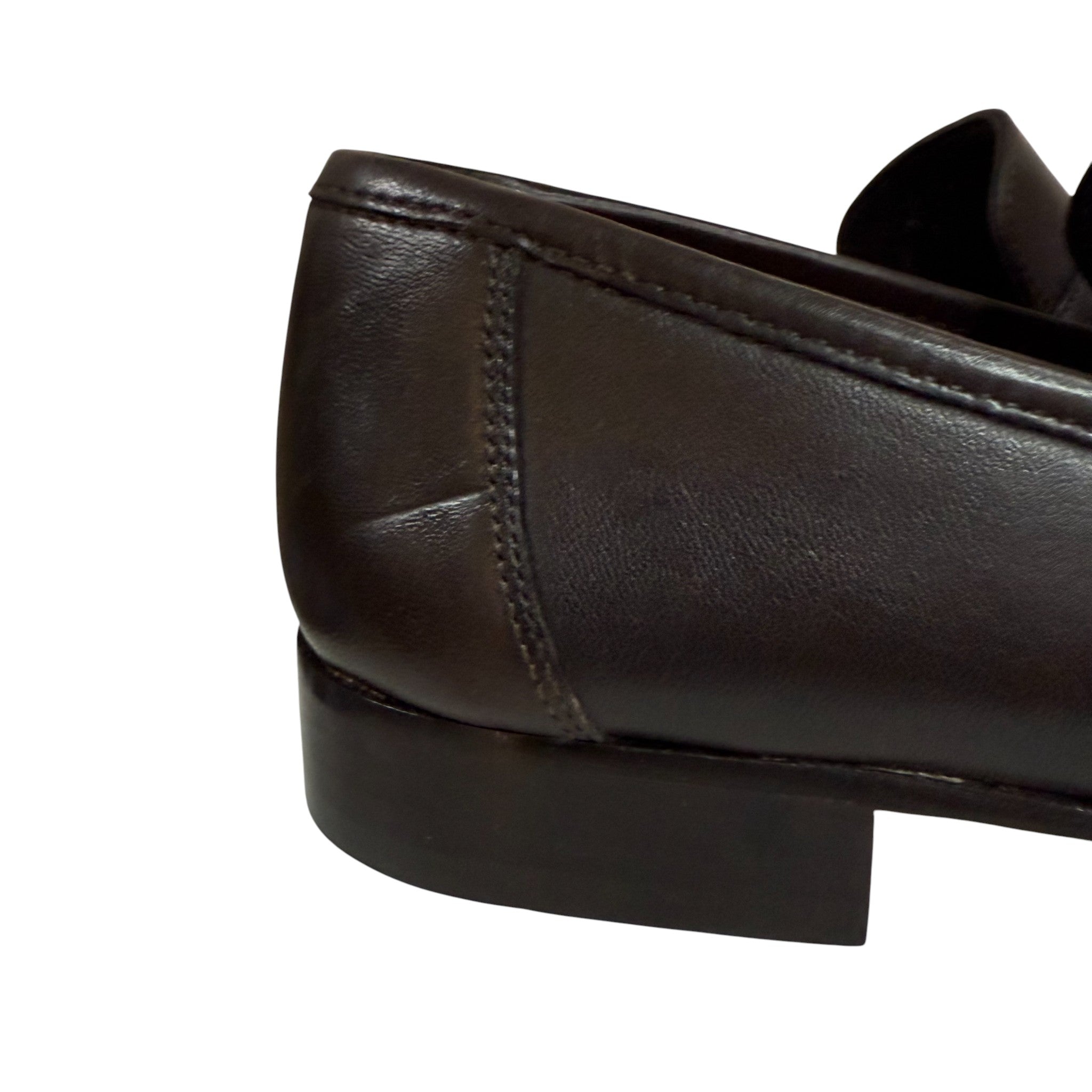 The hand-stitched moc-toe construction, leather lining, and leather outsole exemplify Bruno Magli’s legacy of luxury shoemaking. Gently worn and extremely well-kept, these loafers display only light outsole wear—typical of a few steps—and remain in excellent, elevated condition.