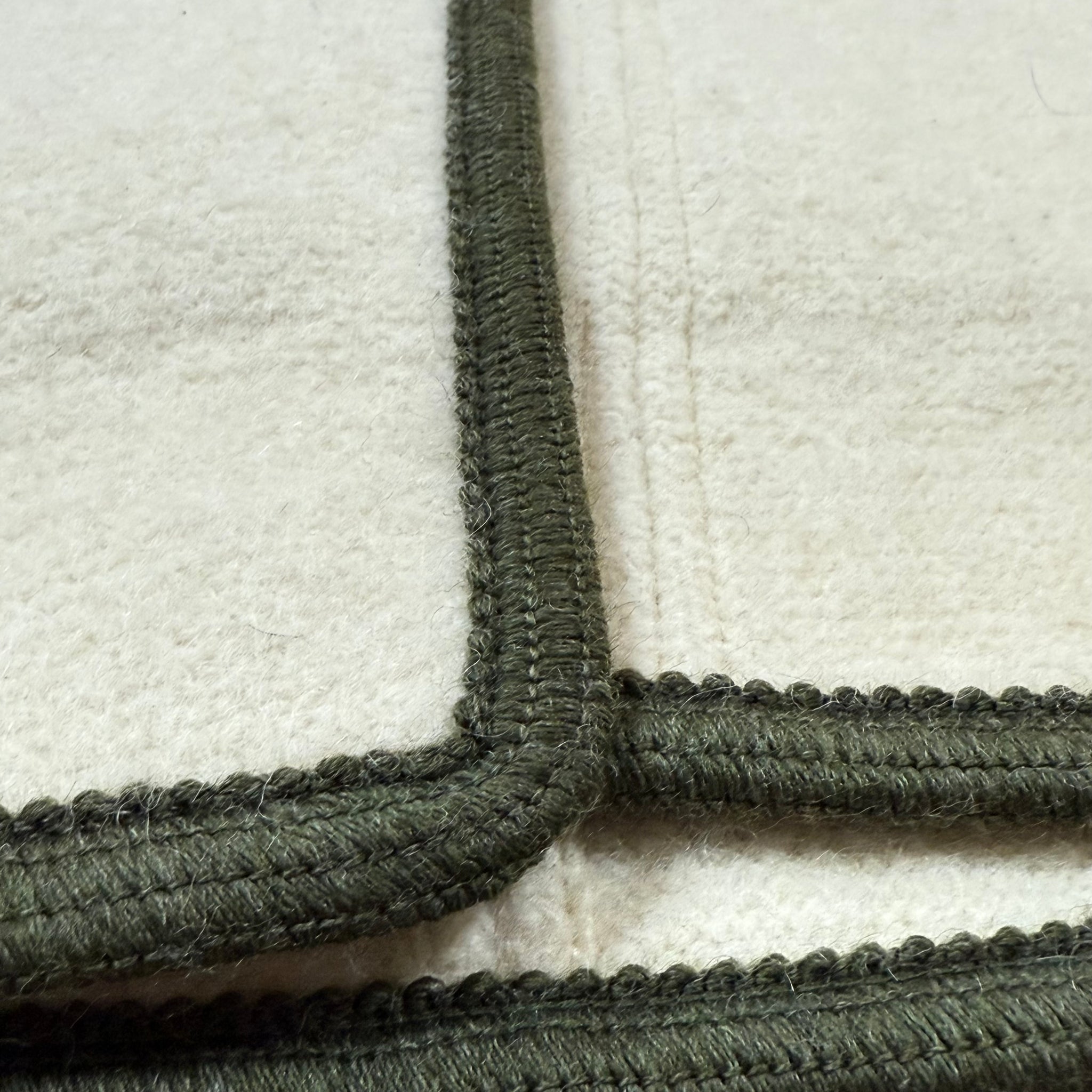 • Cream body with forest green contrast trim