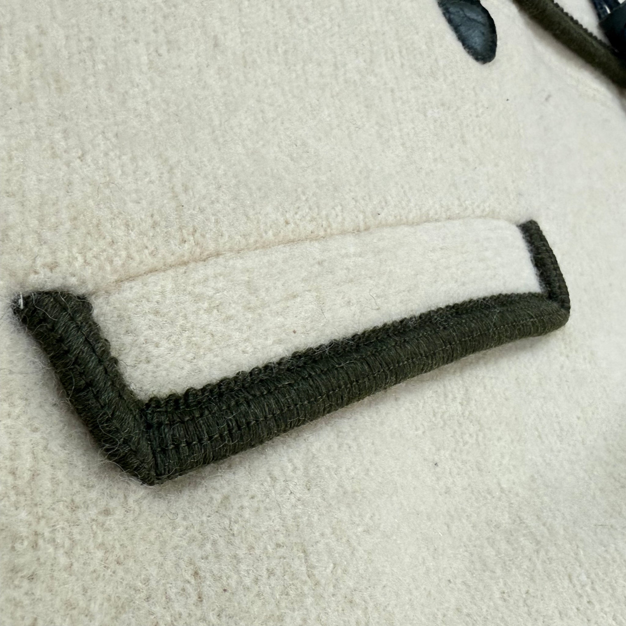 The coat presents very clean and high-end, with thick quality wool, welt pockets, and reinforced binding throughout. It does have a few flaws as shown (small moth nips), but they blend well into the natural wool texture and do not affect overall appearance or wearability.