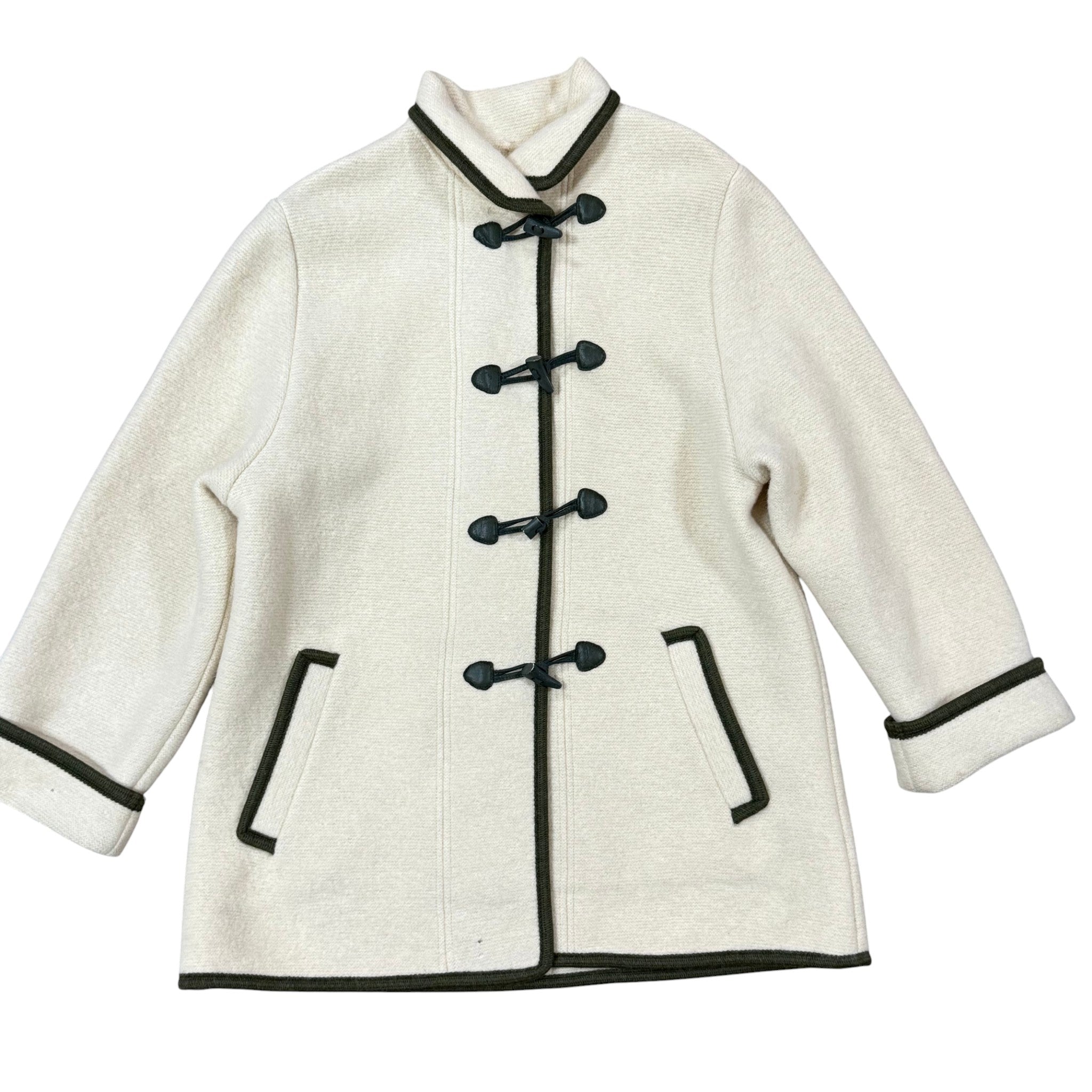 Vintage 70s Cream Boiled Wool Toggle Coat Size Large