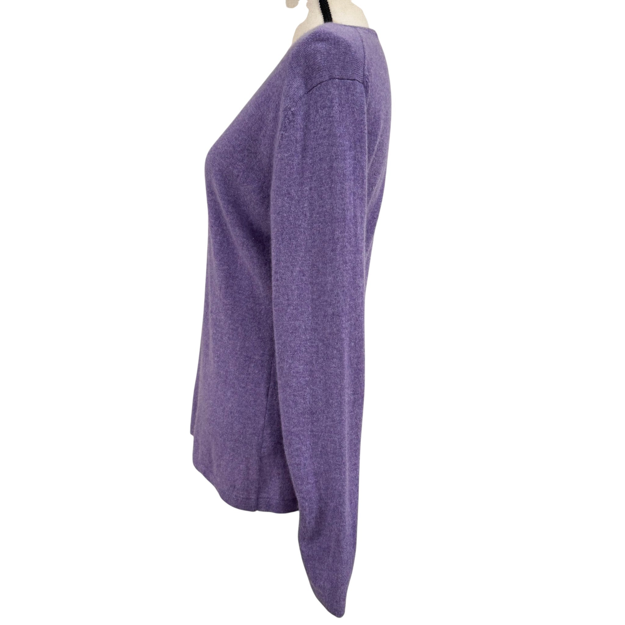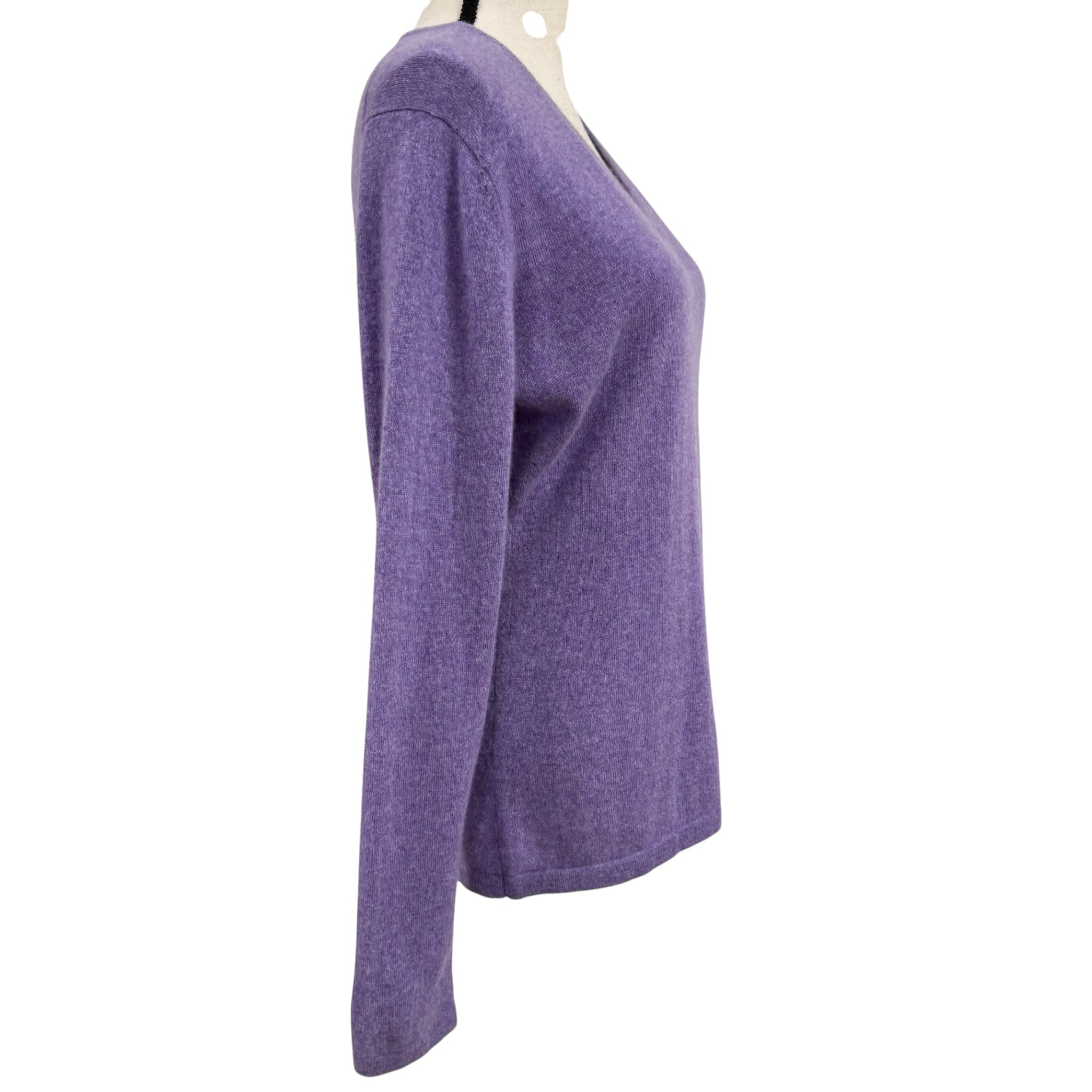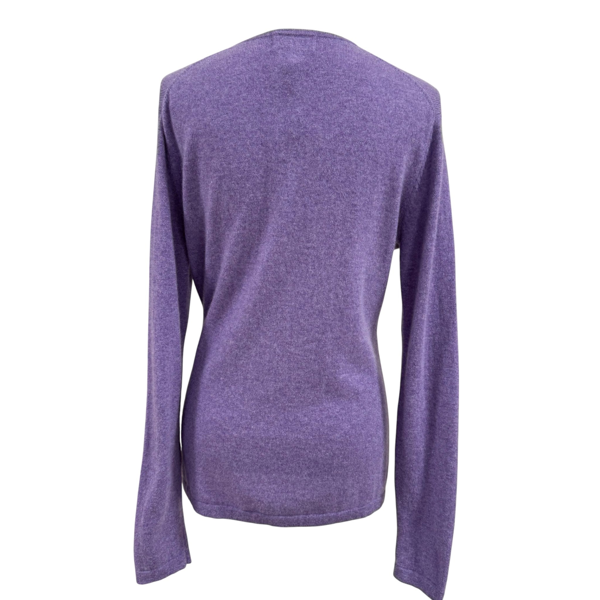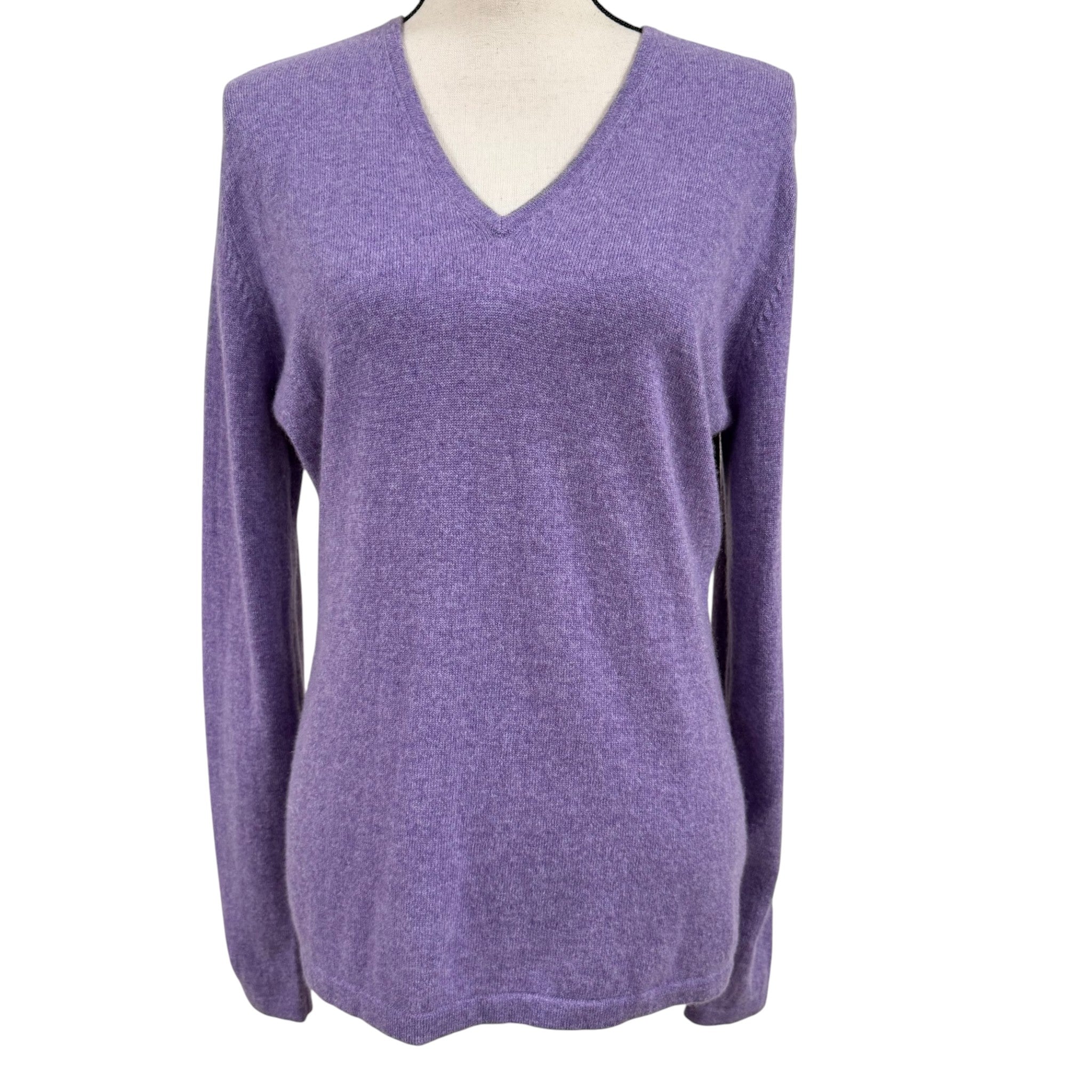 Ultra-soft lavender cashmere sweater by Dunedin Cashmere, crafted in Scotland and known for exceptional fiber quality. Features a classic V-neckline, lightweight knit, and a timeless silhouette that works beautifully layered or worn alone. A refined wardrobe staple in a highly wearable pastel tone.