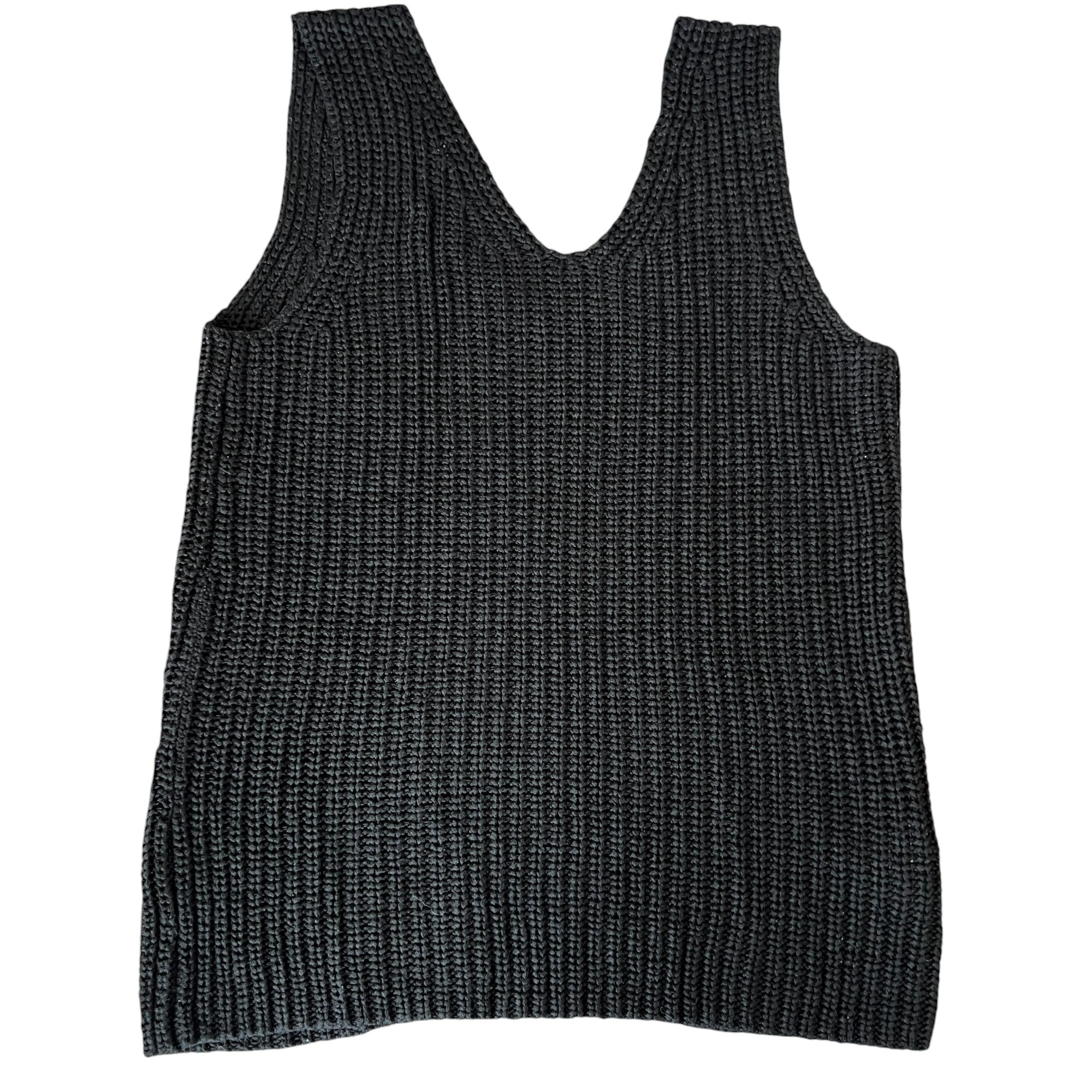 • Load image into Gallery viewer, Black V-Neck Knit Tank Top Size Small