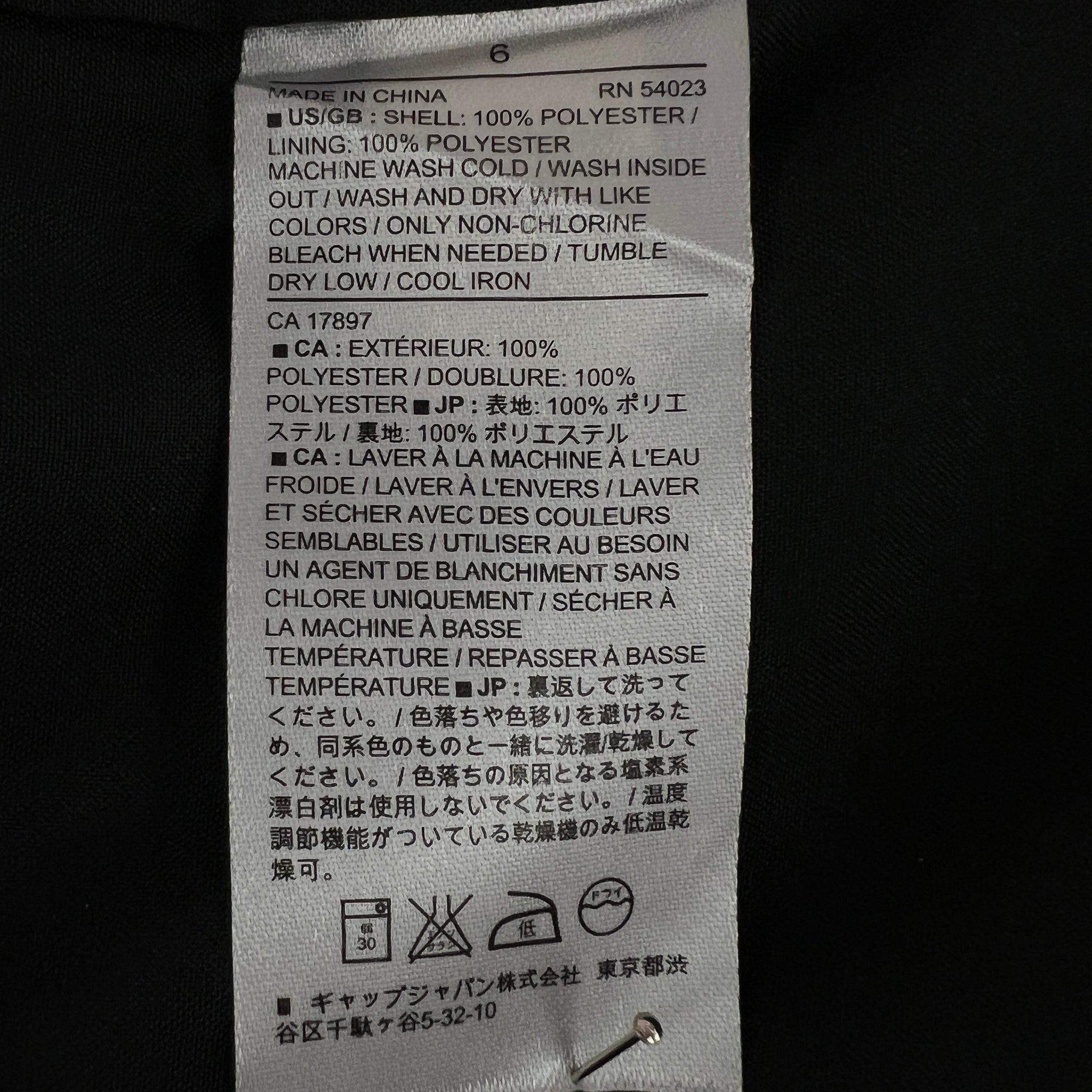 • Garment Care: Machine Washable