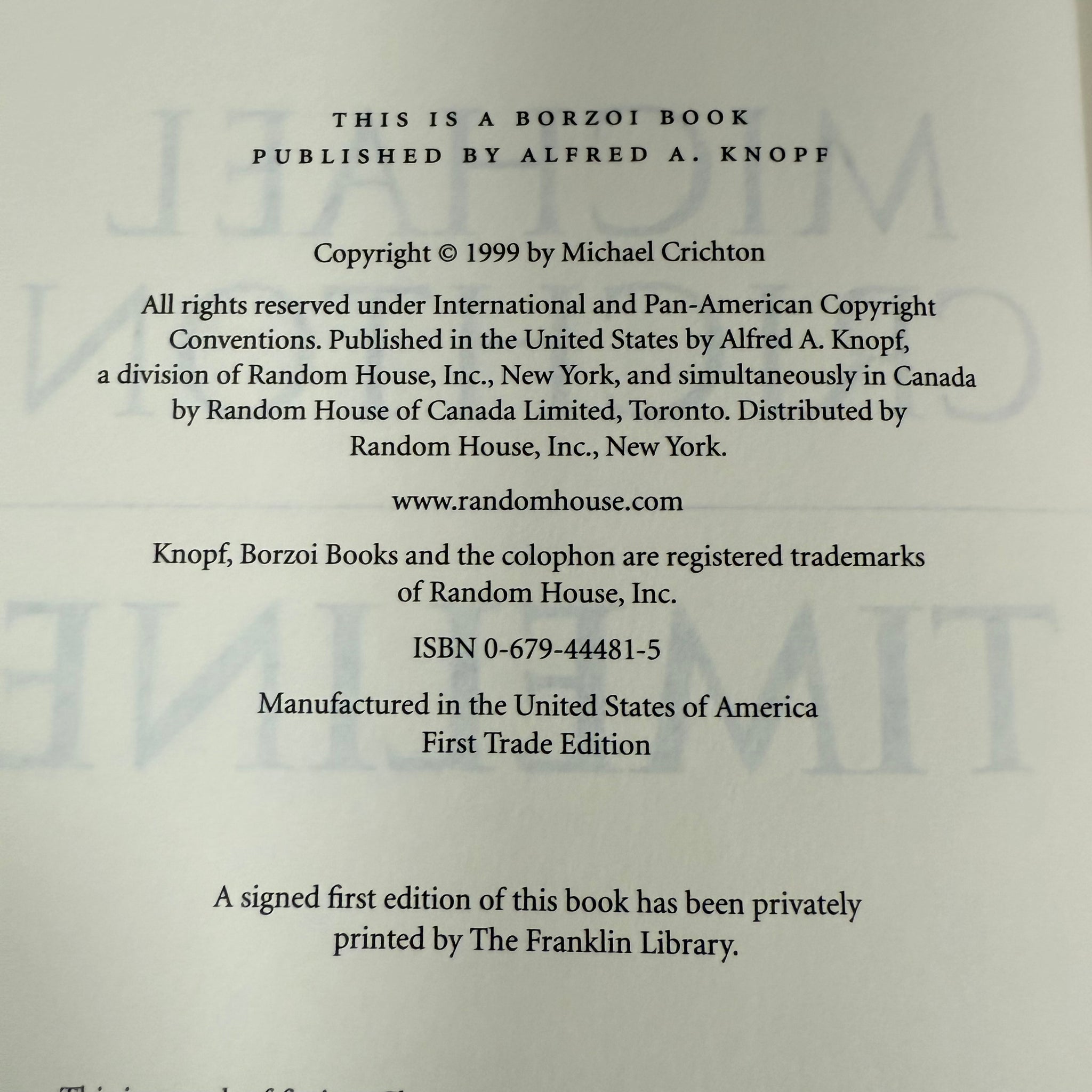 Timeline by Michael Crichton - 1999 1st Edition Hardcover