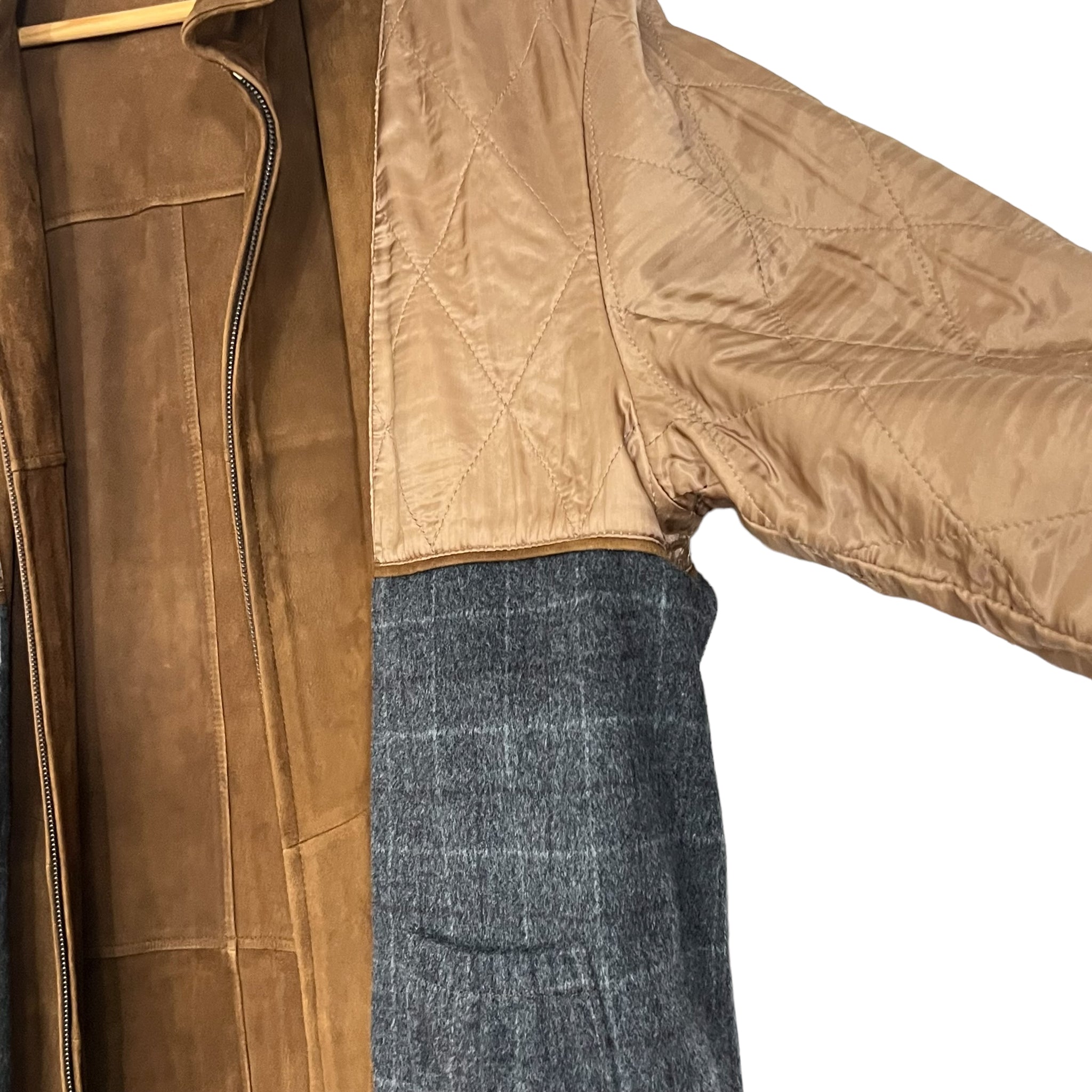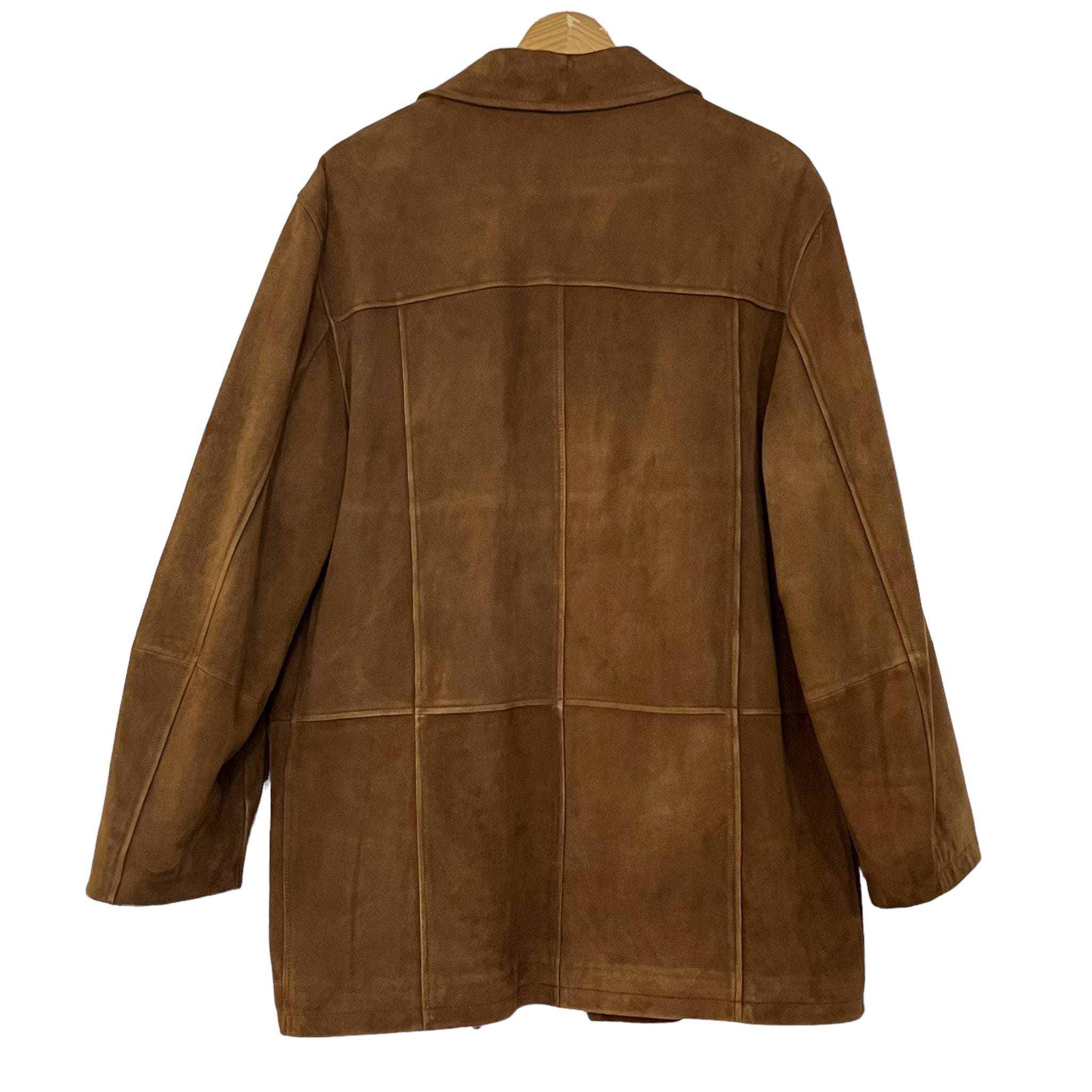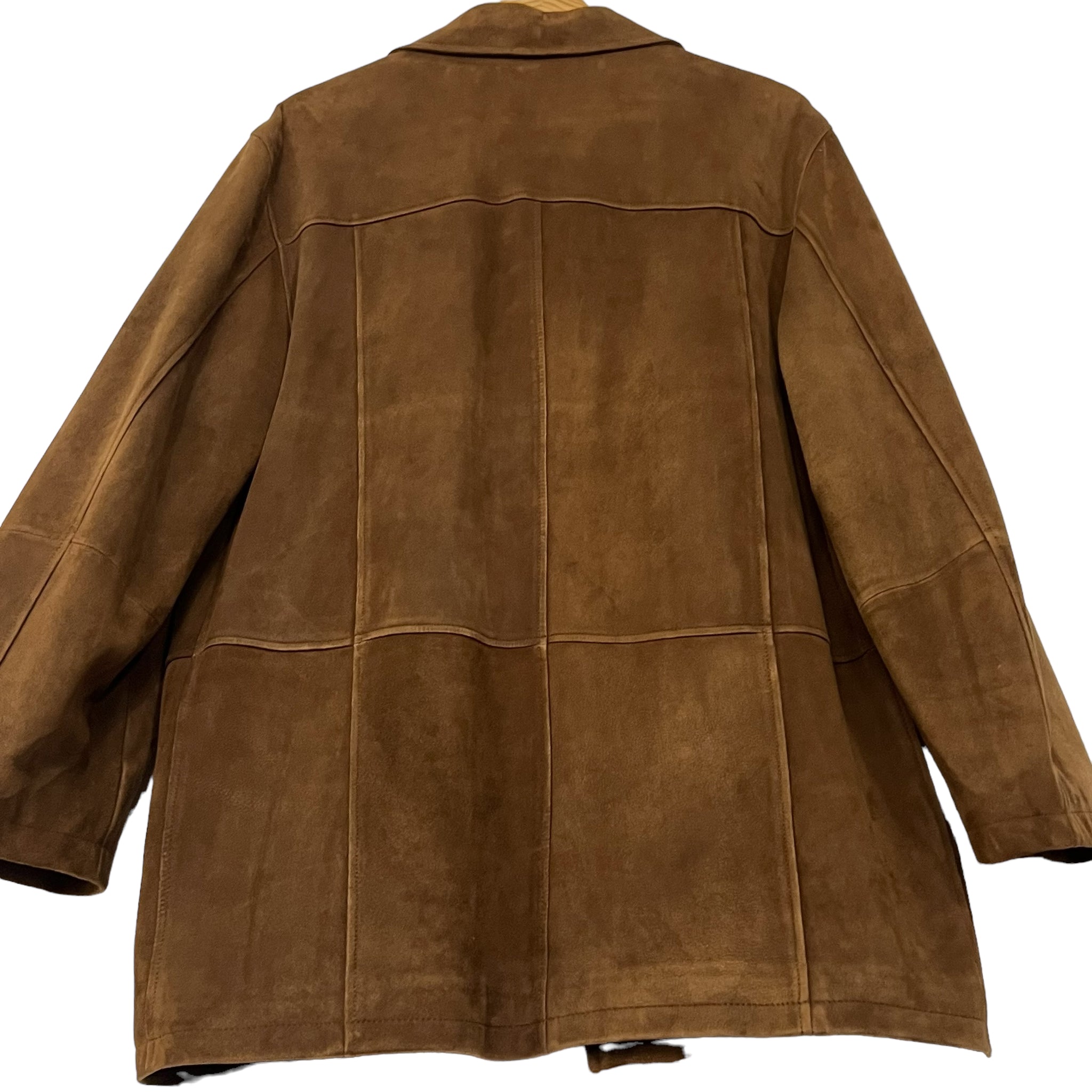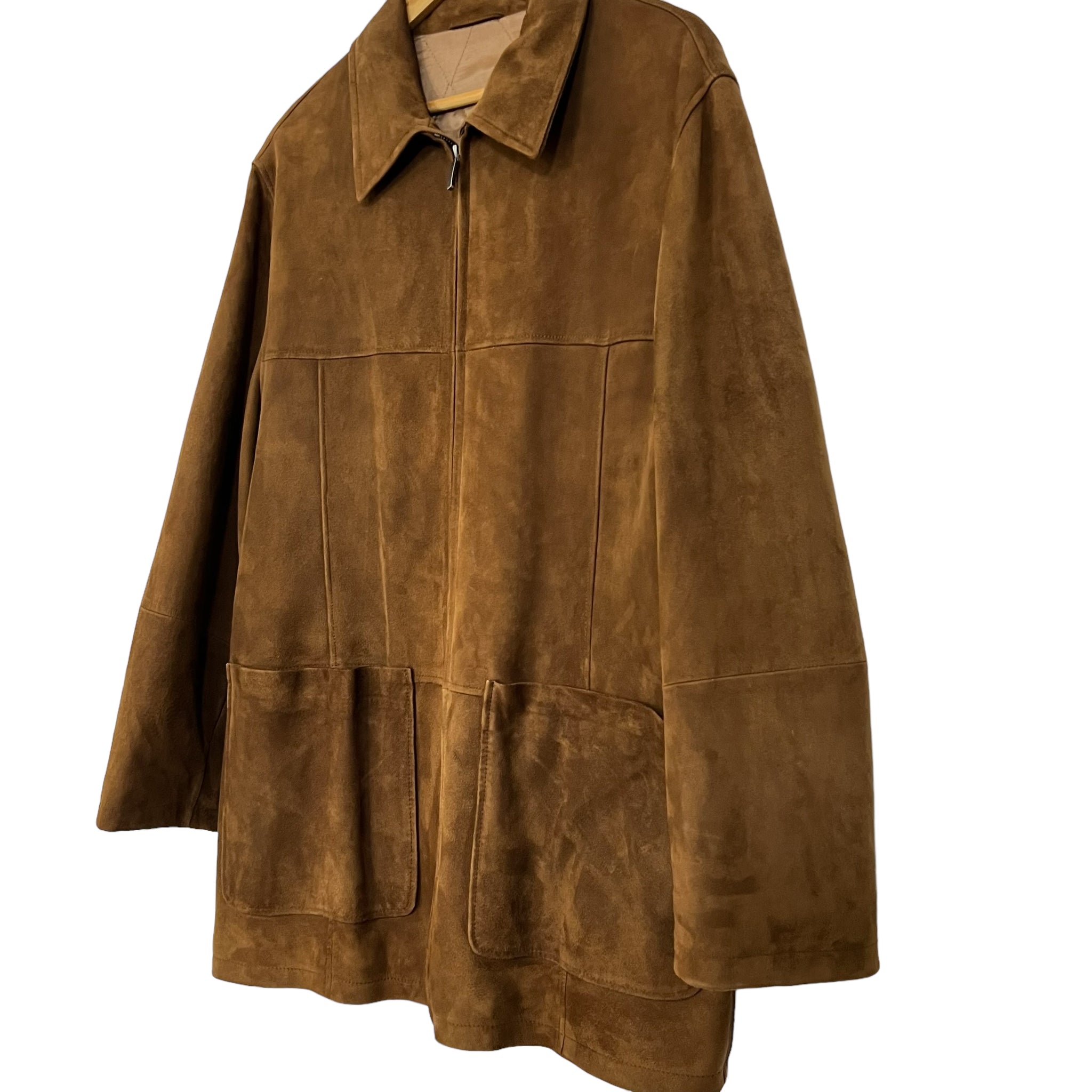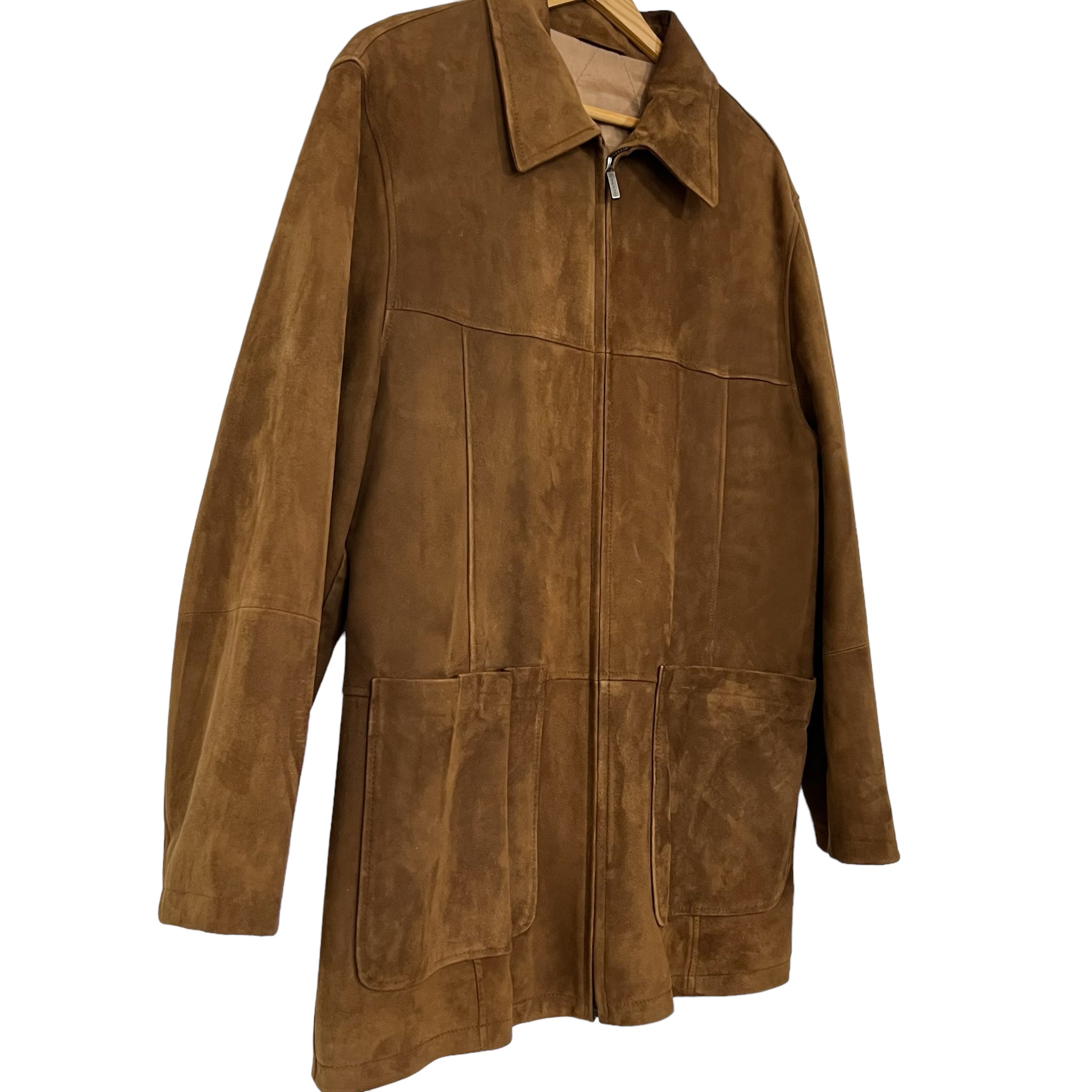 Gently worn preowned condition. The left pocket is wrinkled from being squeezed in the closet. Super clean lining. The jacket was worn only a handful of times. Buttery soft calfskin suede.