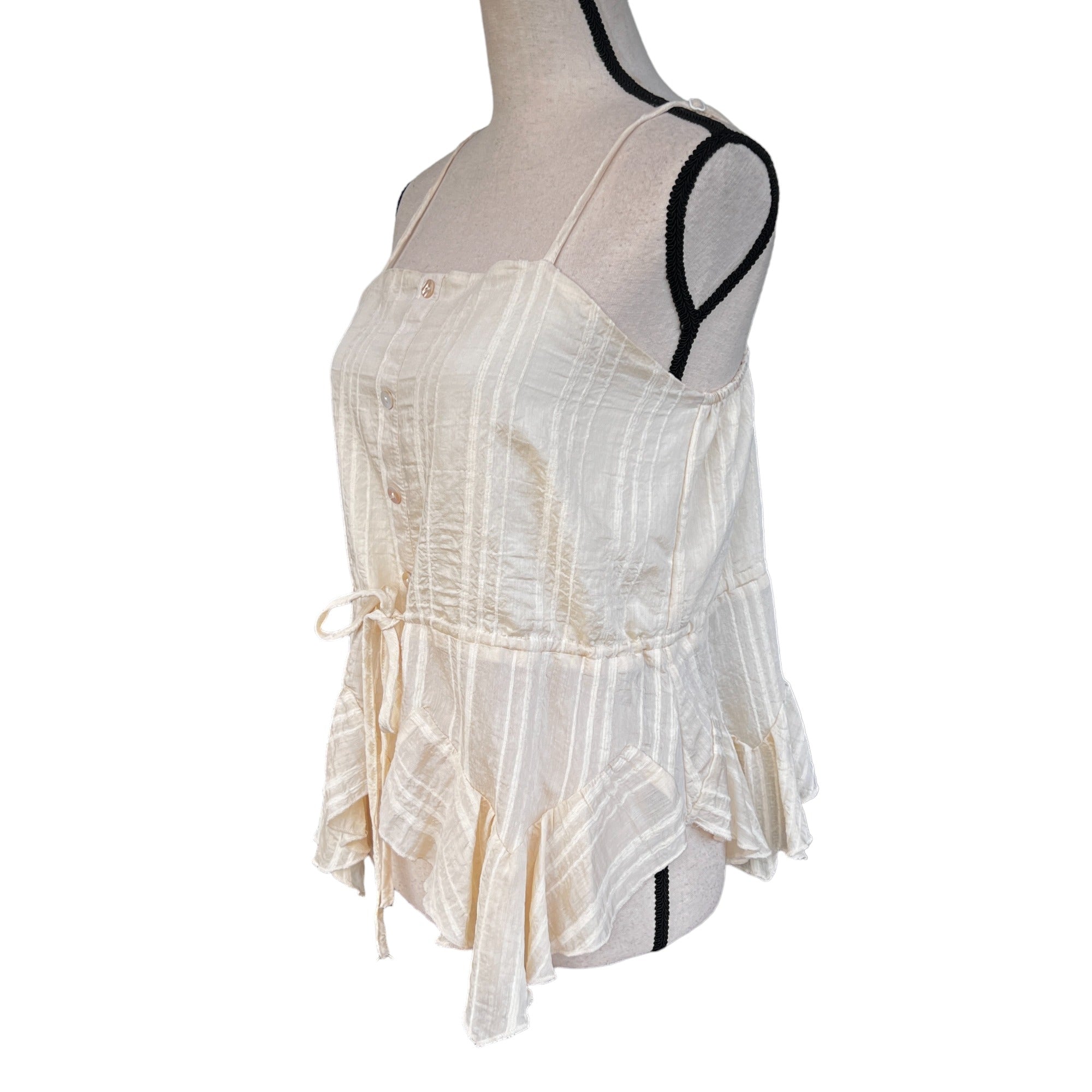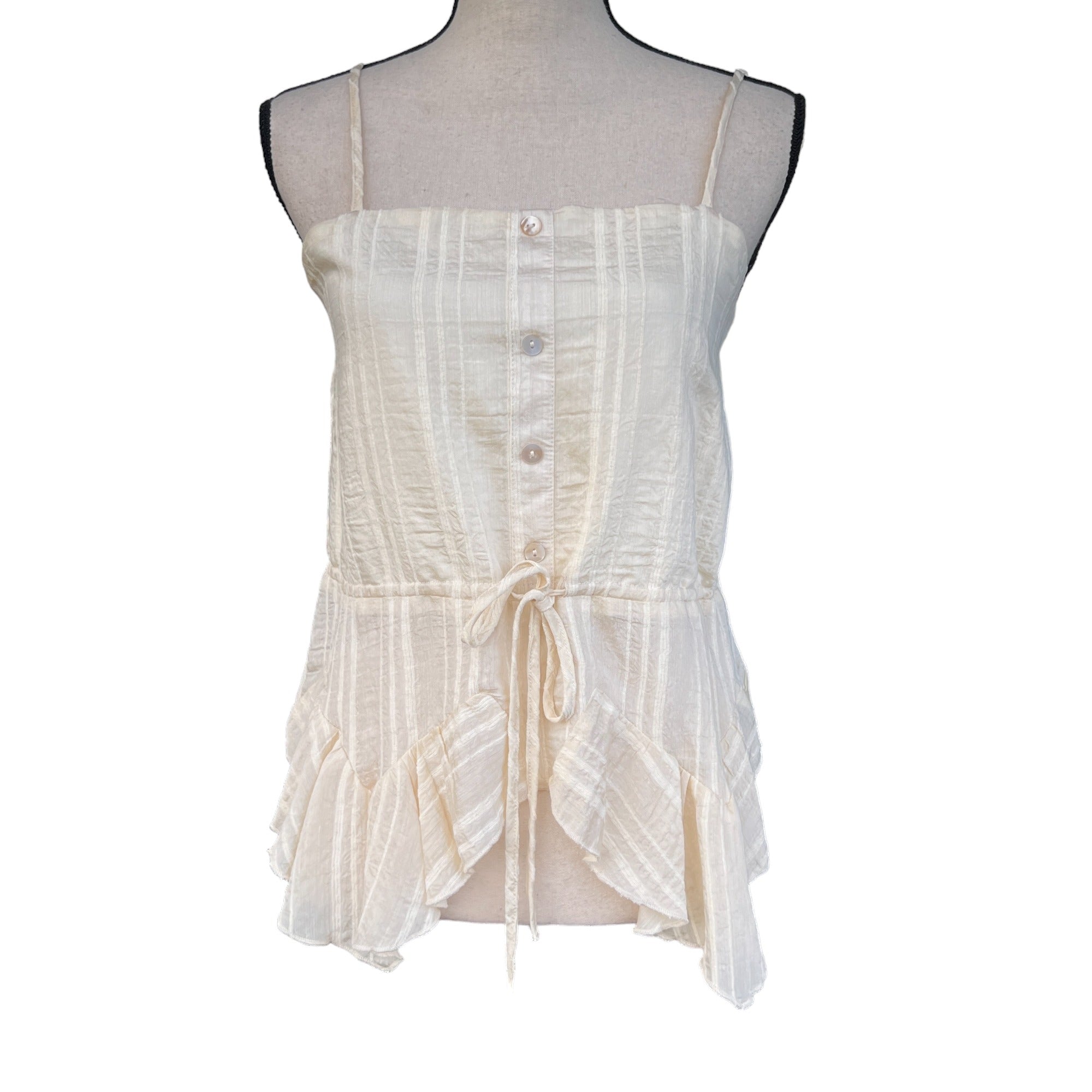 Miss Sparkling Cream Ruffle Hem Tank Medium