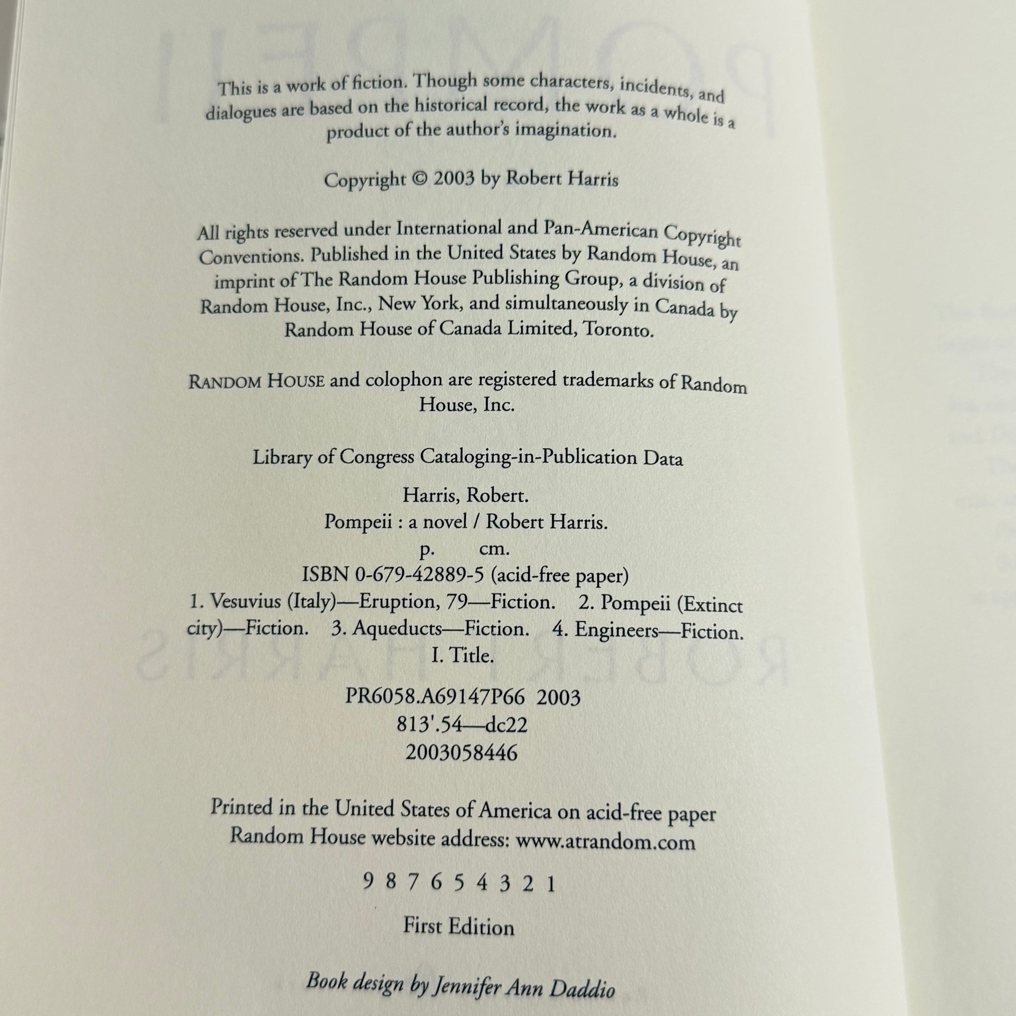 Pompeii by Robert Harris — 2003 First Edition, First Printing Hardcover