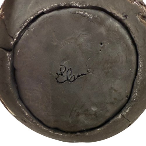 Raku-fired for rich variation and intentional crackling, this vase has a sculptural weight and modern, organic character ideal for collectors of contemporary ceramics and statement pottery.