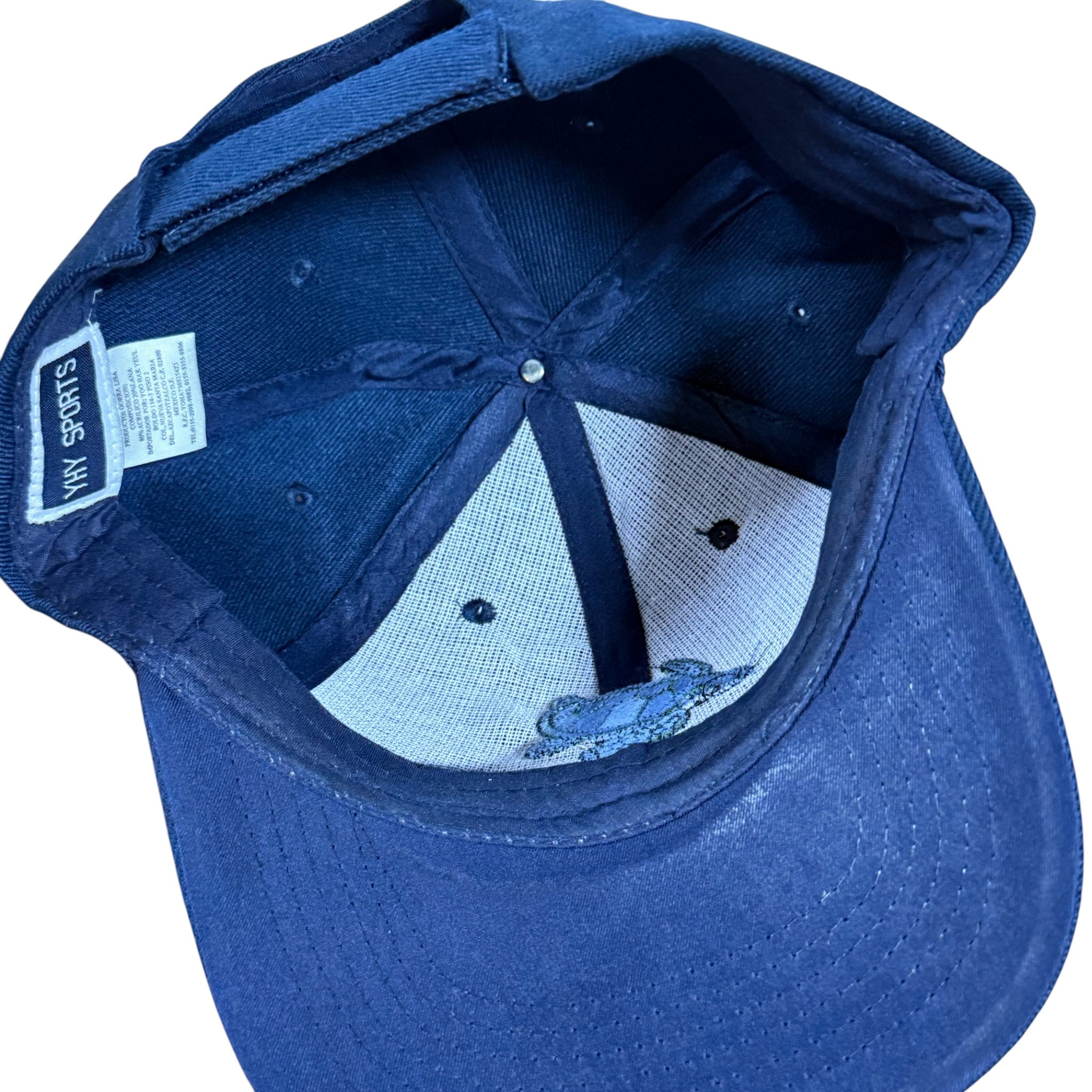 Vintage 90s navy blue Sea Turtle Cap from Cozumel, Mexico featuring a detailed embroidered sea turtle. Classic curved brim and adjustable back.