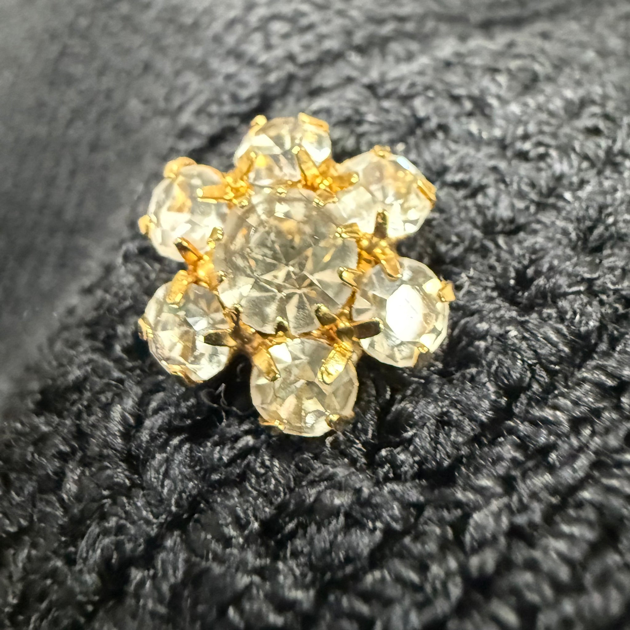 Button-front design with floral prong set crystal buttons