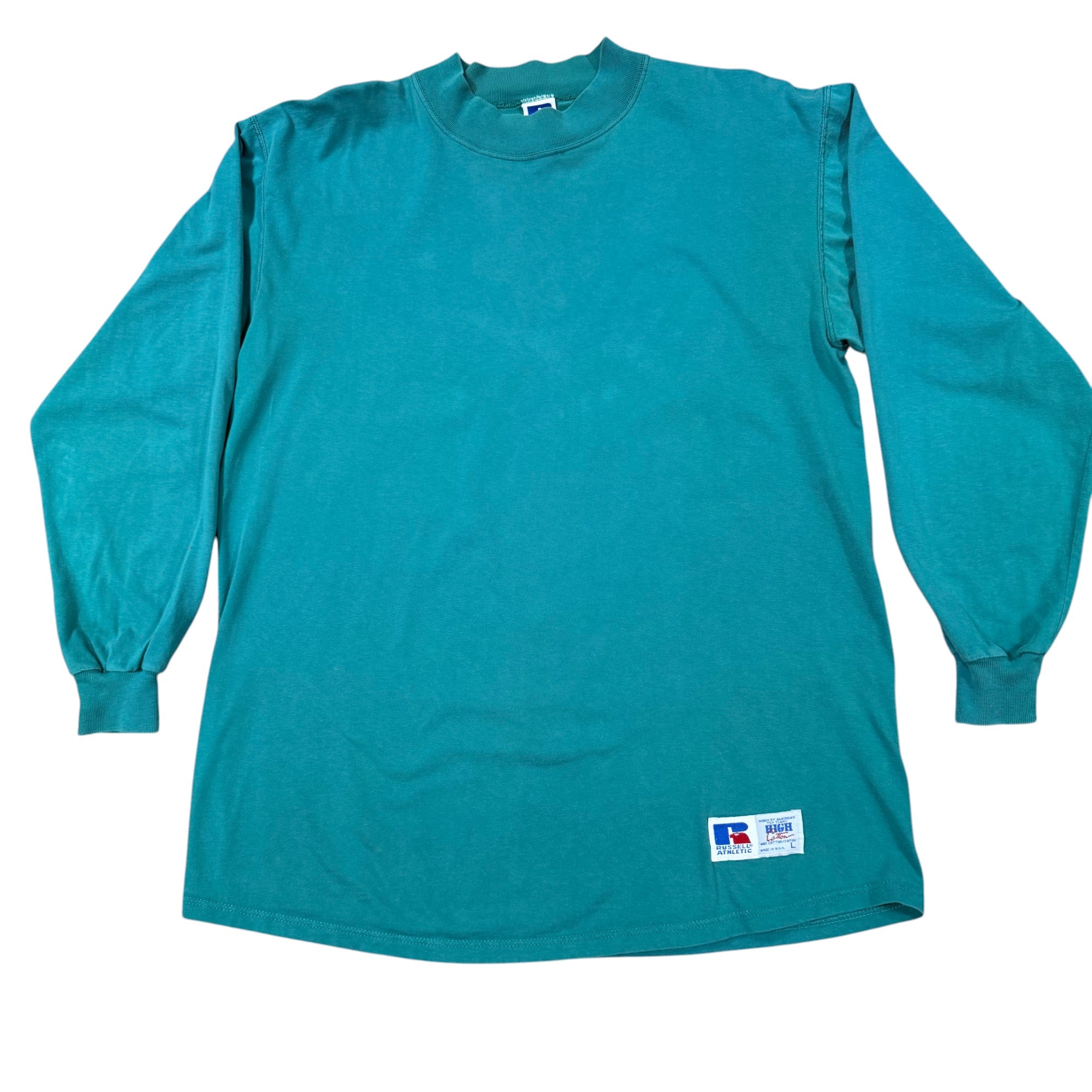 Russell Long Sleeve Cotton Logo Crewneck Teal Green USA Large