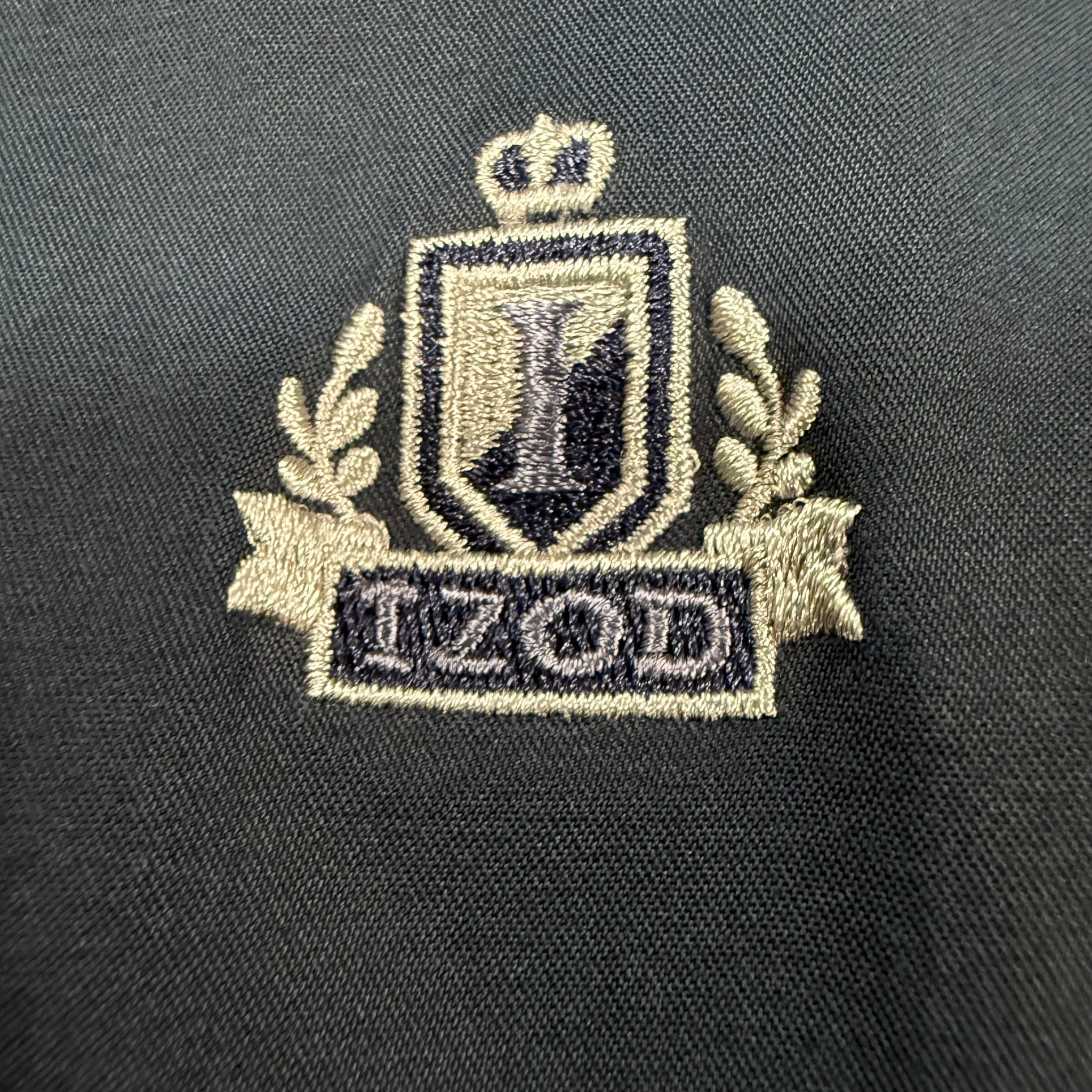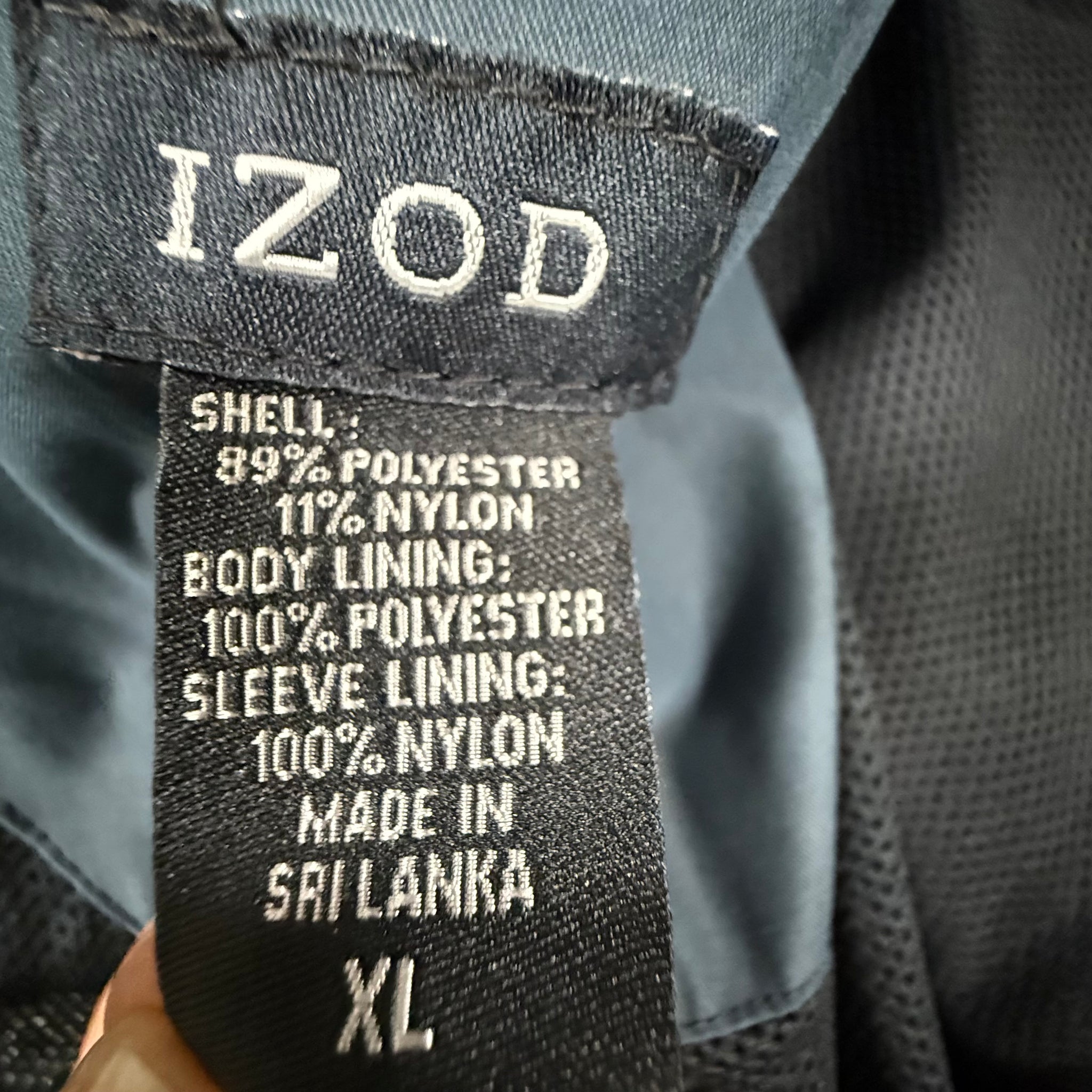 90s IZOD Crest Logo Windbreaker Jacket Navy Zip Front XL - Classic 1990s IZOD full-zip windbreaker in deep navy blue, featuring the embroidered IZOD crest logo on the chest. Made from a durable polyester-nylon blend shell with zipper pockets ,a breathable mesh lining and smooth nylon-lined sleeves for easy layering.