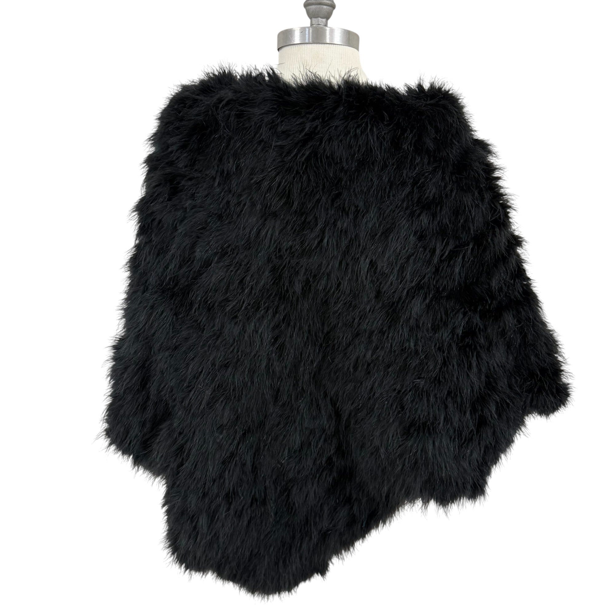 Statement piece from Lafayette 148 New York. This dramatic black capelet features a plush ostrich feather-look texture over a soft nylon/spandex satin lining. The asymmetrical cut drapes elegantly over the shoulders, creating movement.