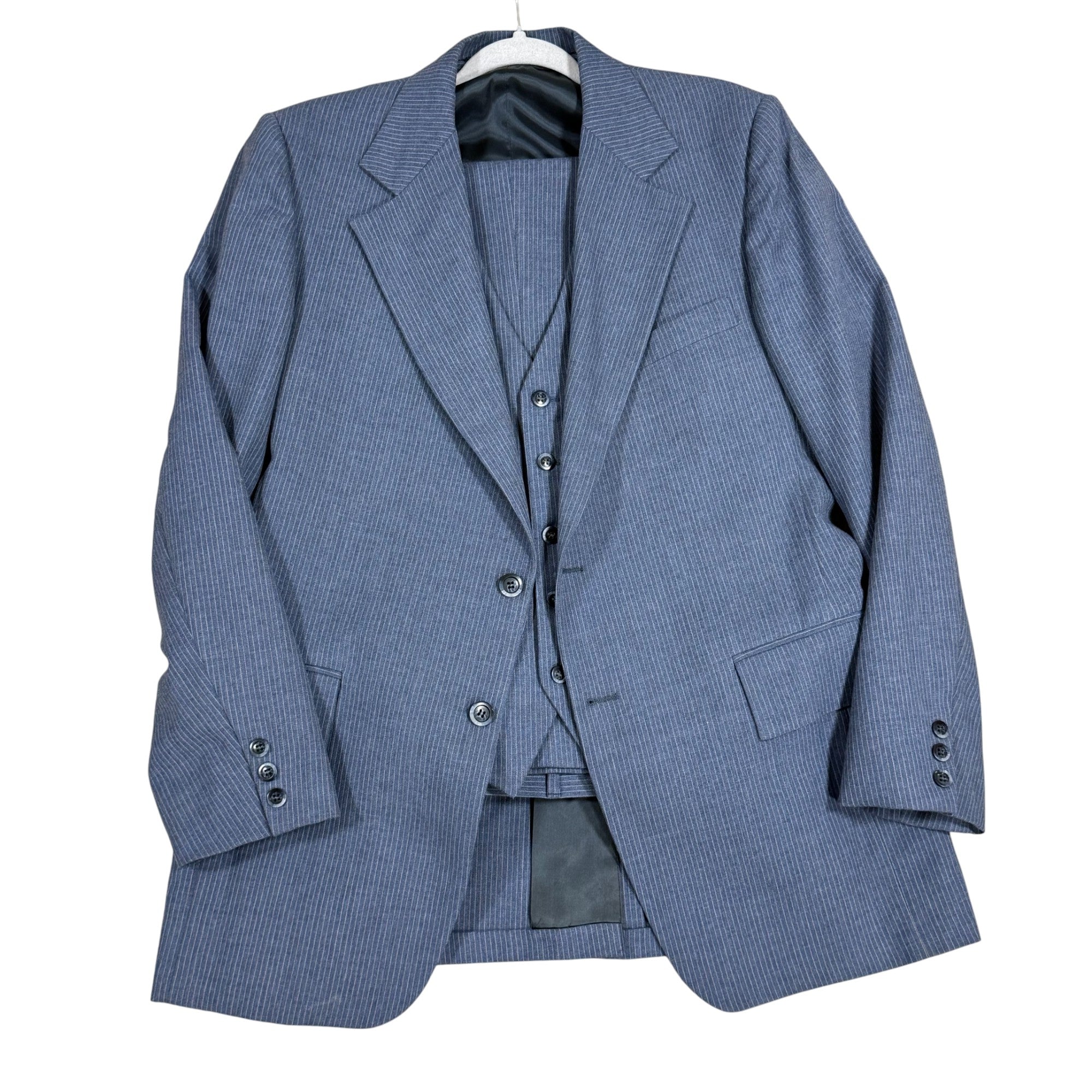 Vintage 3 Piece Wool Suit Gray Blue 42–44R