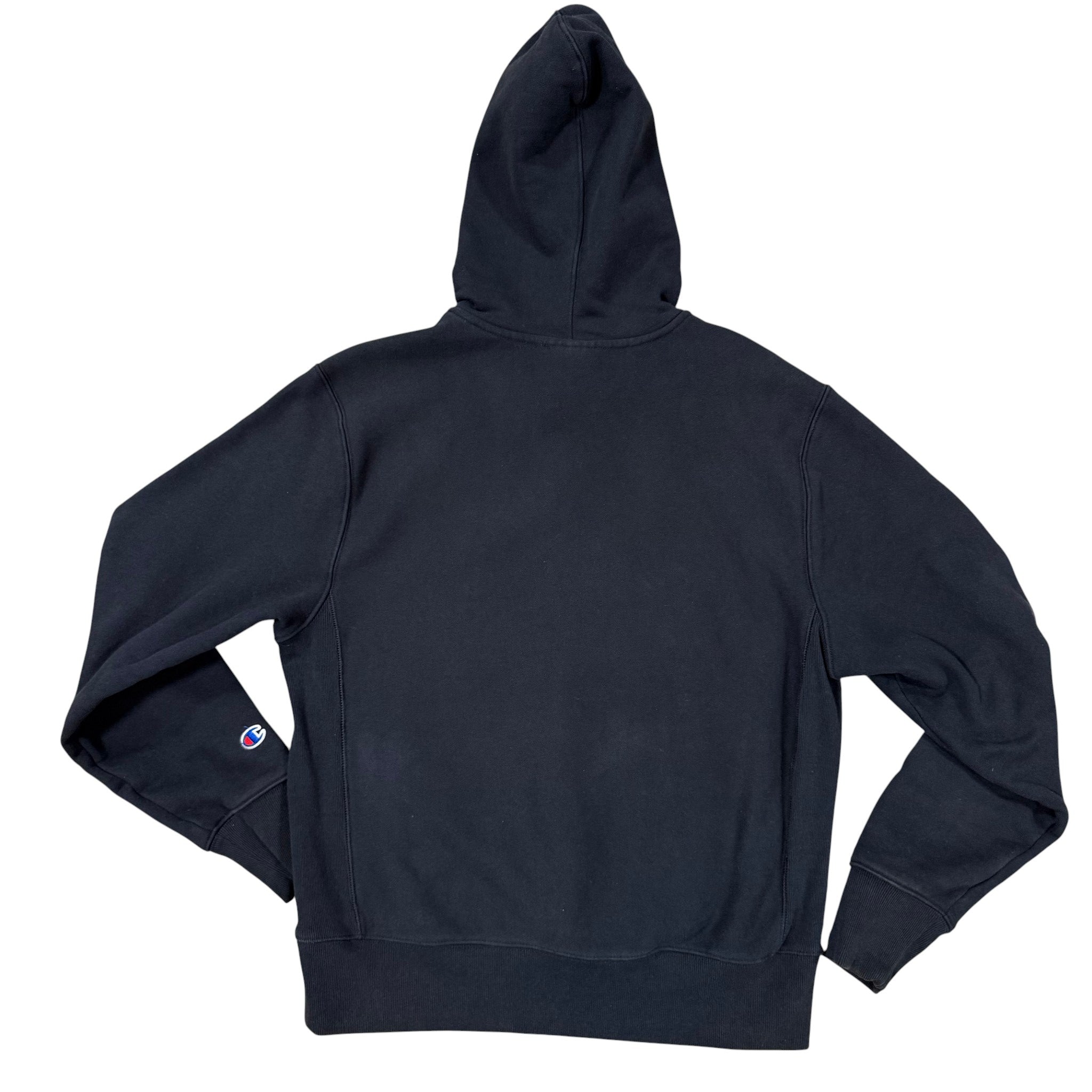 Champion X Nintendo Reverse Weave Super Mario Hoodie Embroidered Size Medium - Limited edition Champion Reverse Weave hoodie featuring a Super Mario Bros Famicom-style patch graphic on the chest and bold yellow “Champion” script down the sleeve. Made from heavyweight cotton-blend fleece with the iconic Reverse Weave construction for durability and a structured fit. Includes a half-zip neckline, kangaroo pocket, drawstring hood, and ribbed cuffs and hem for a classic athletic look.