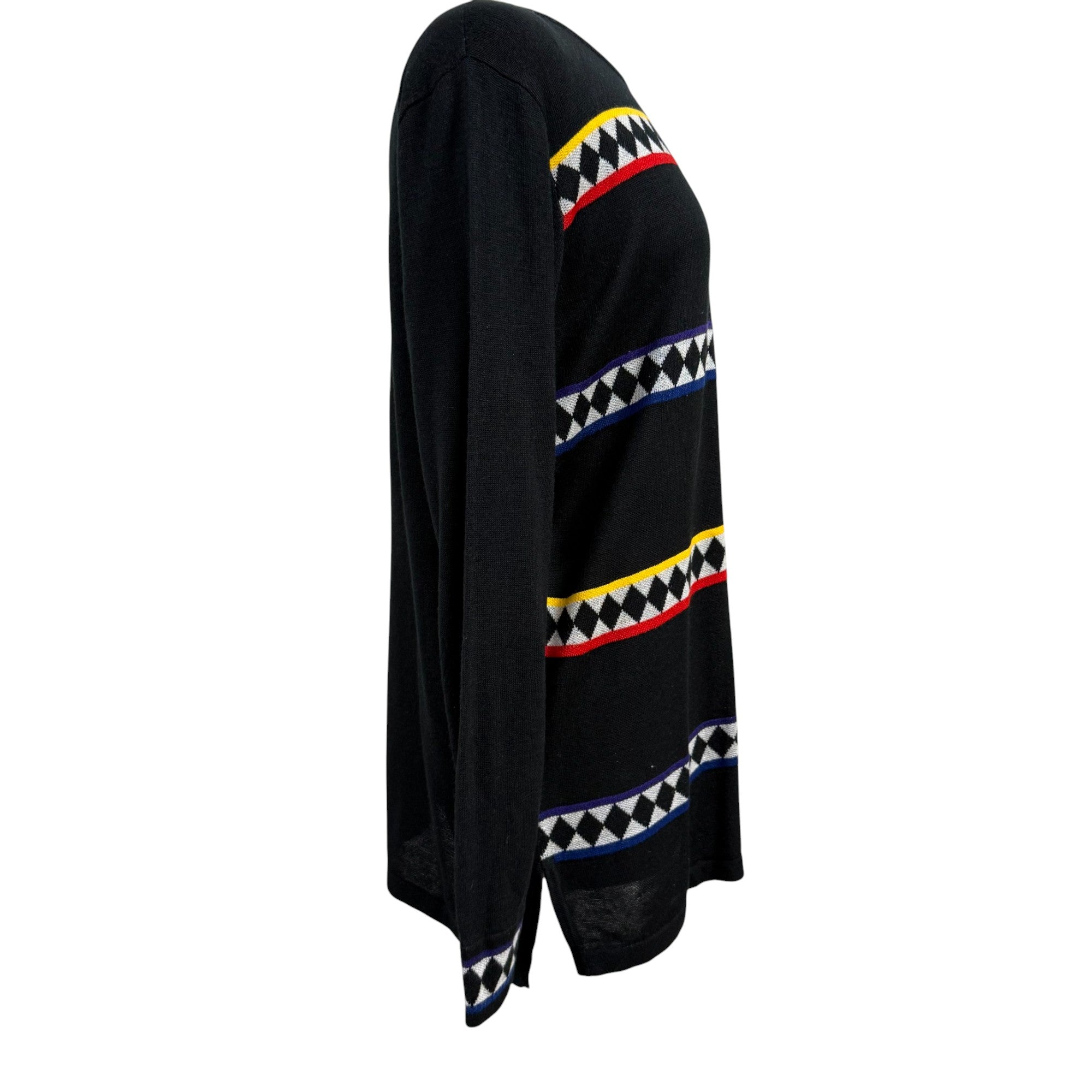 VTG 80s Black Geometric Knit Pullover Sweater Size Medium