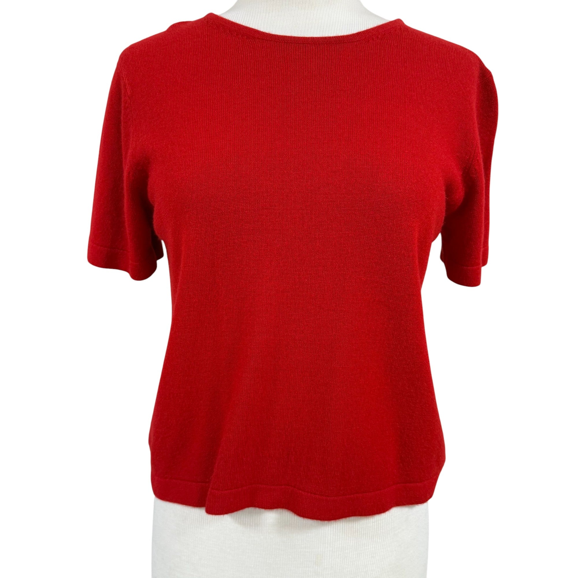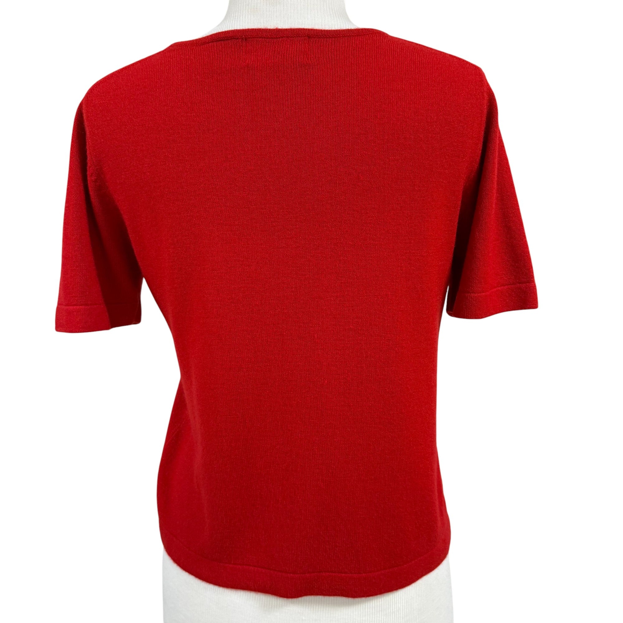 90s Minimalist Red Short Sleeve Knit Sweater Medium