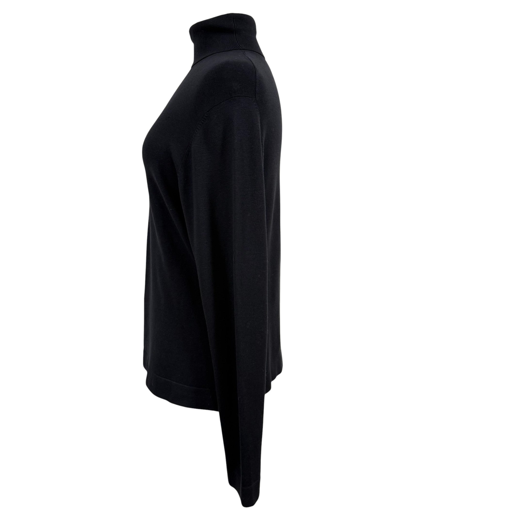 90s Minimalist Black Silk Knit Turtleneck Size Large