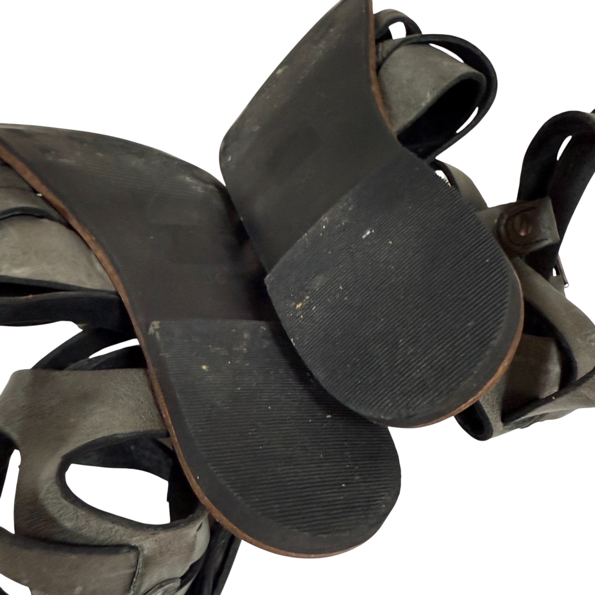 Free People Grey Leather Gladiator Sandals Strappy Ankle Wrap Size 6