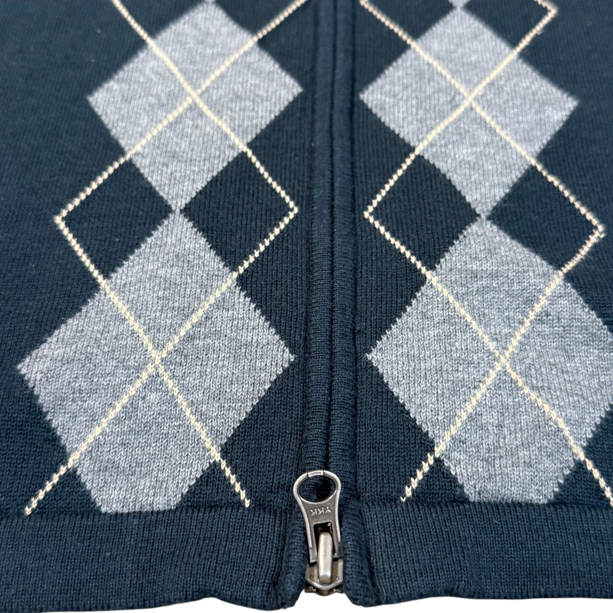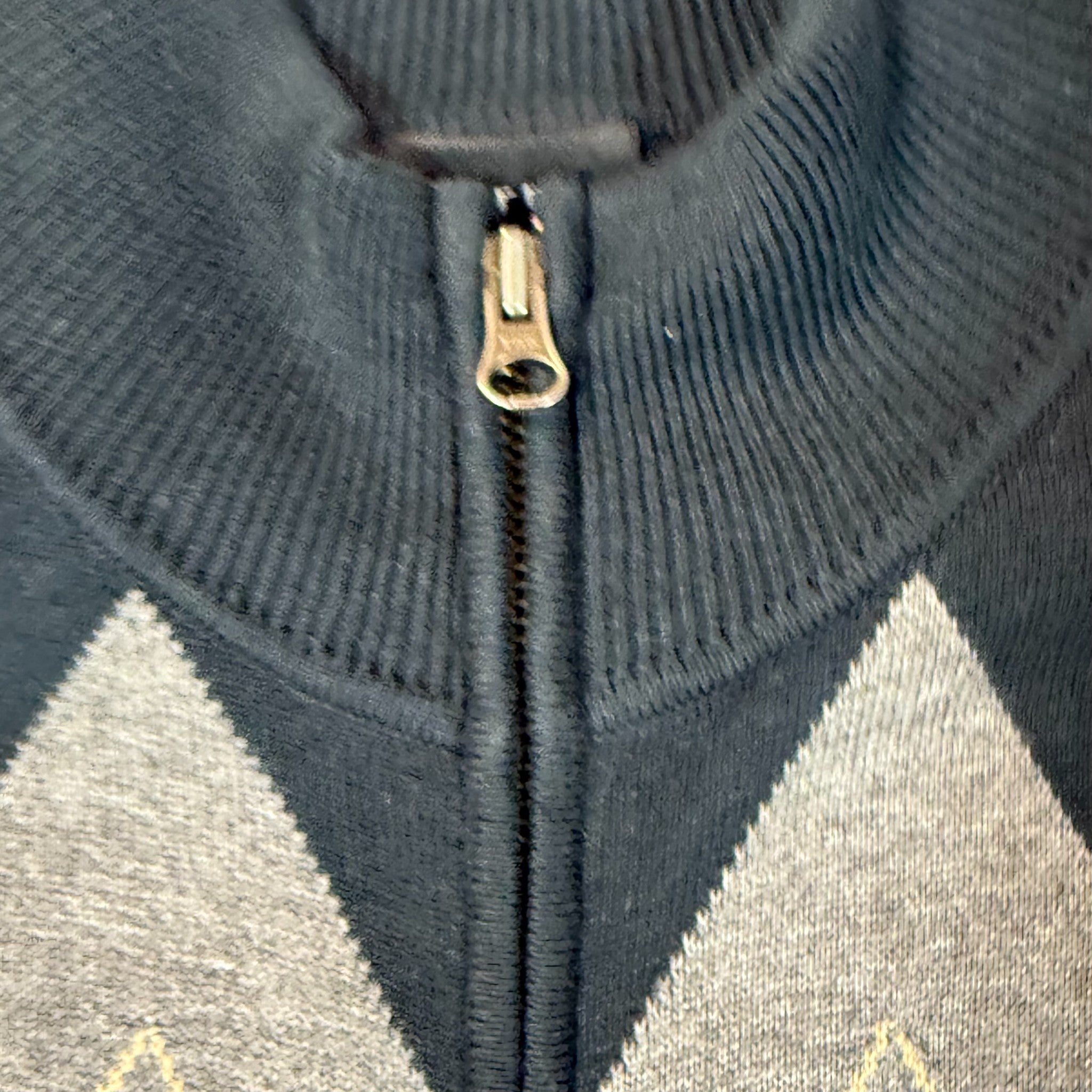 Full Zip Argyle Sweater Black Gray Cotton Knit 2XL Tall
