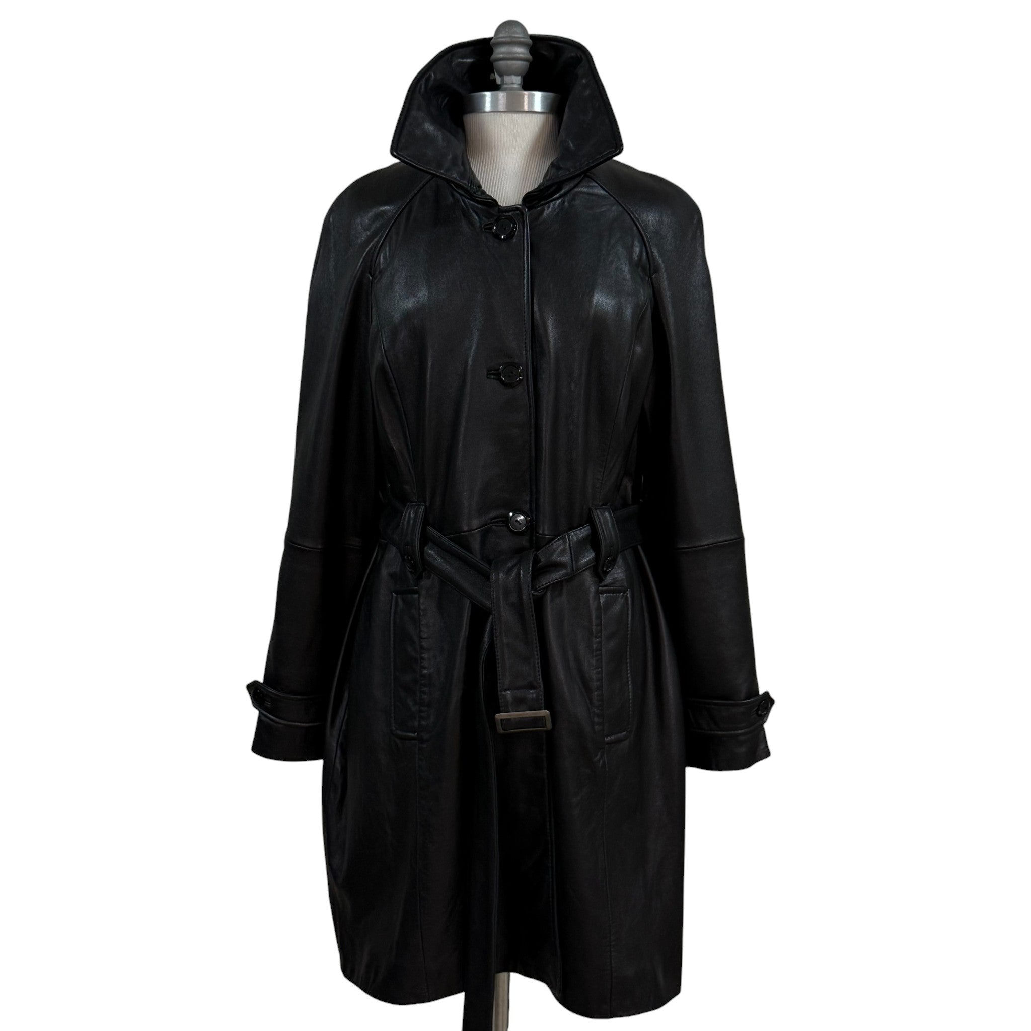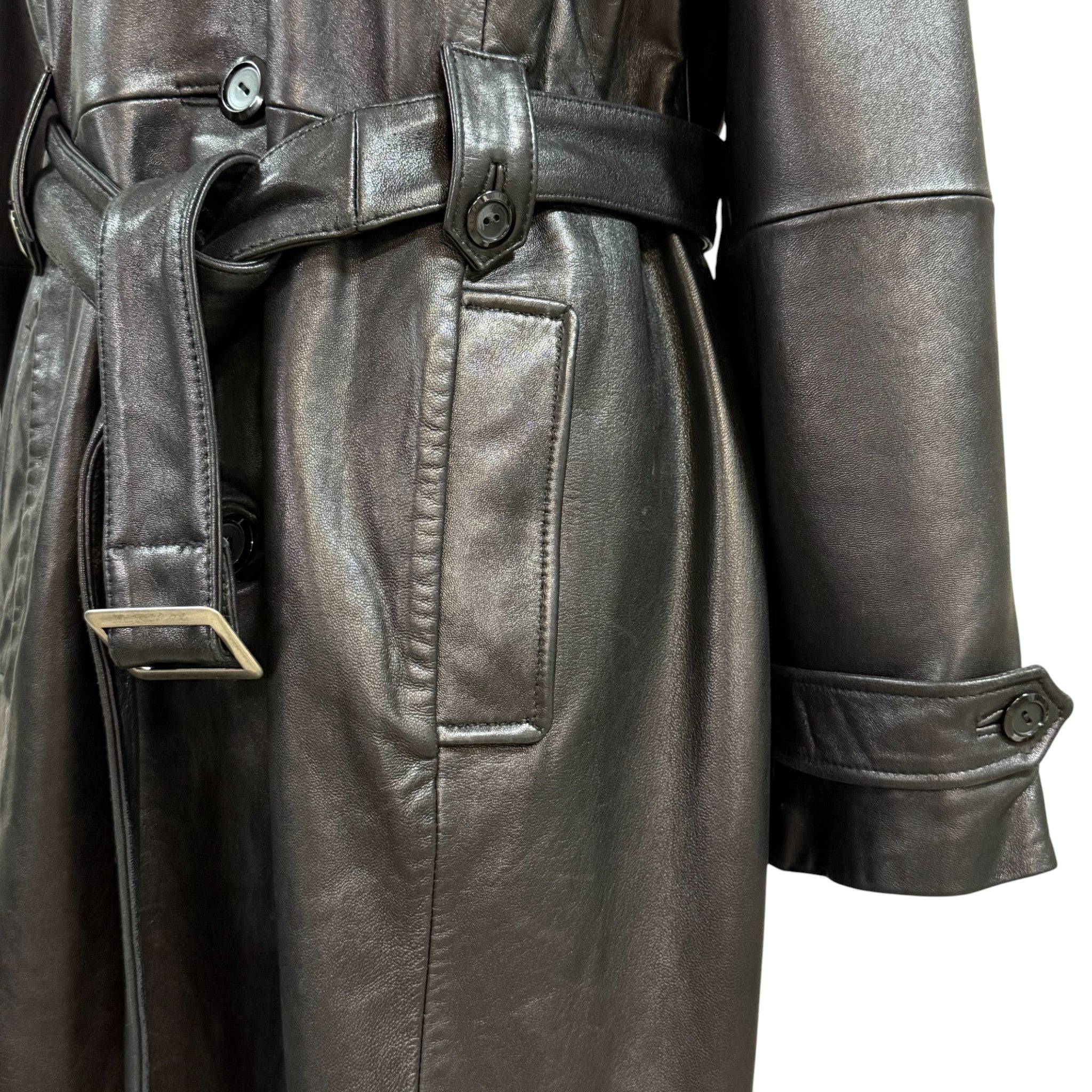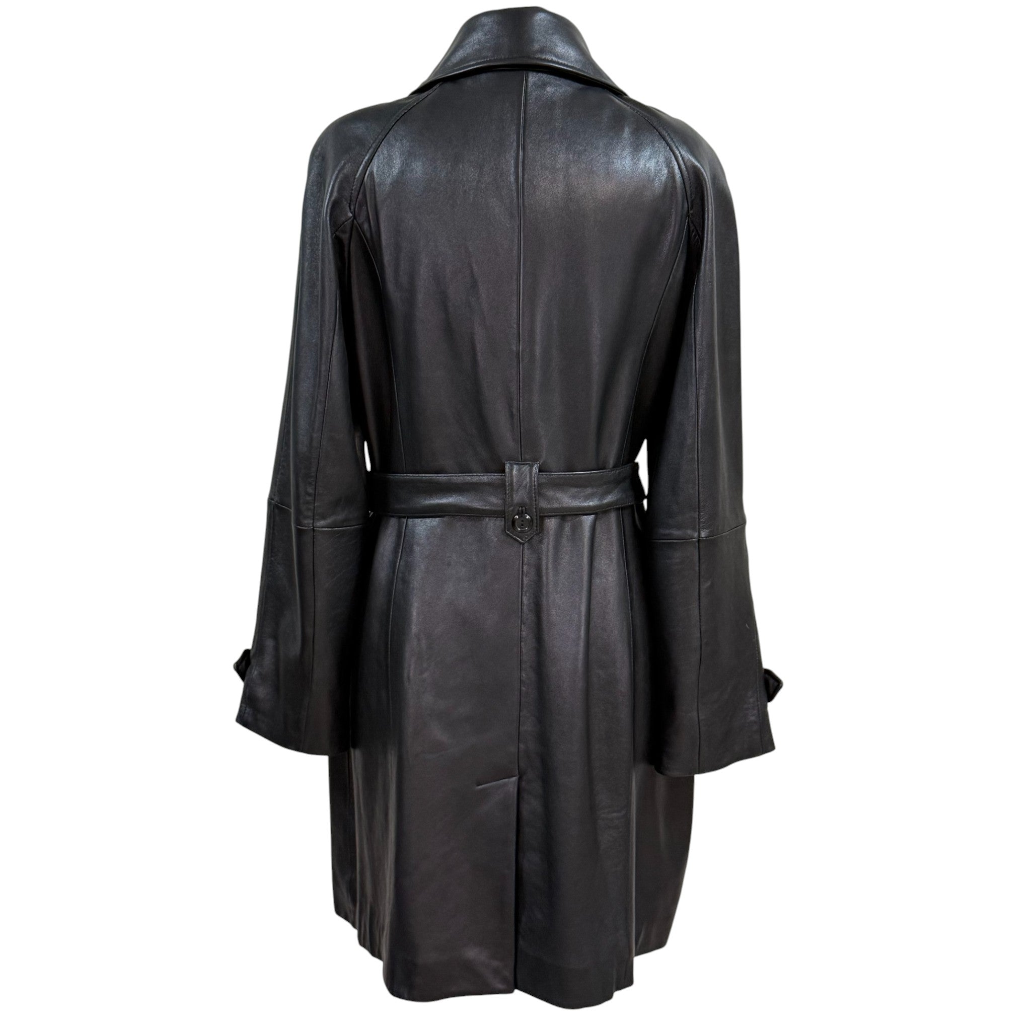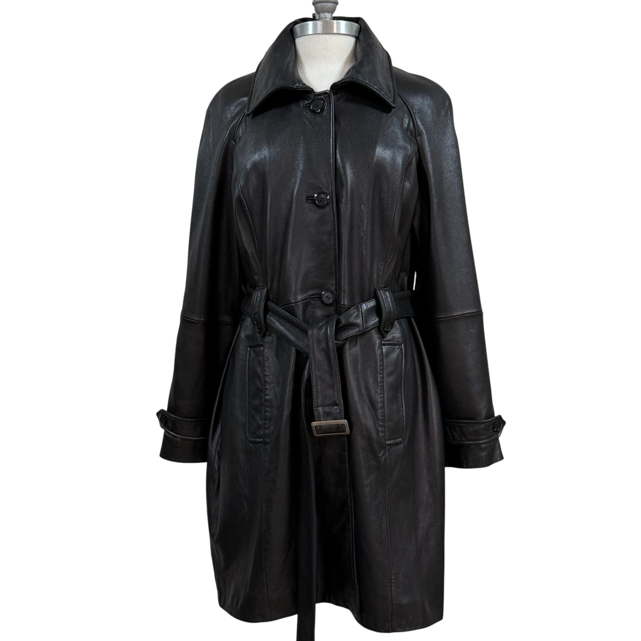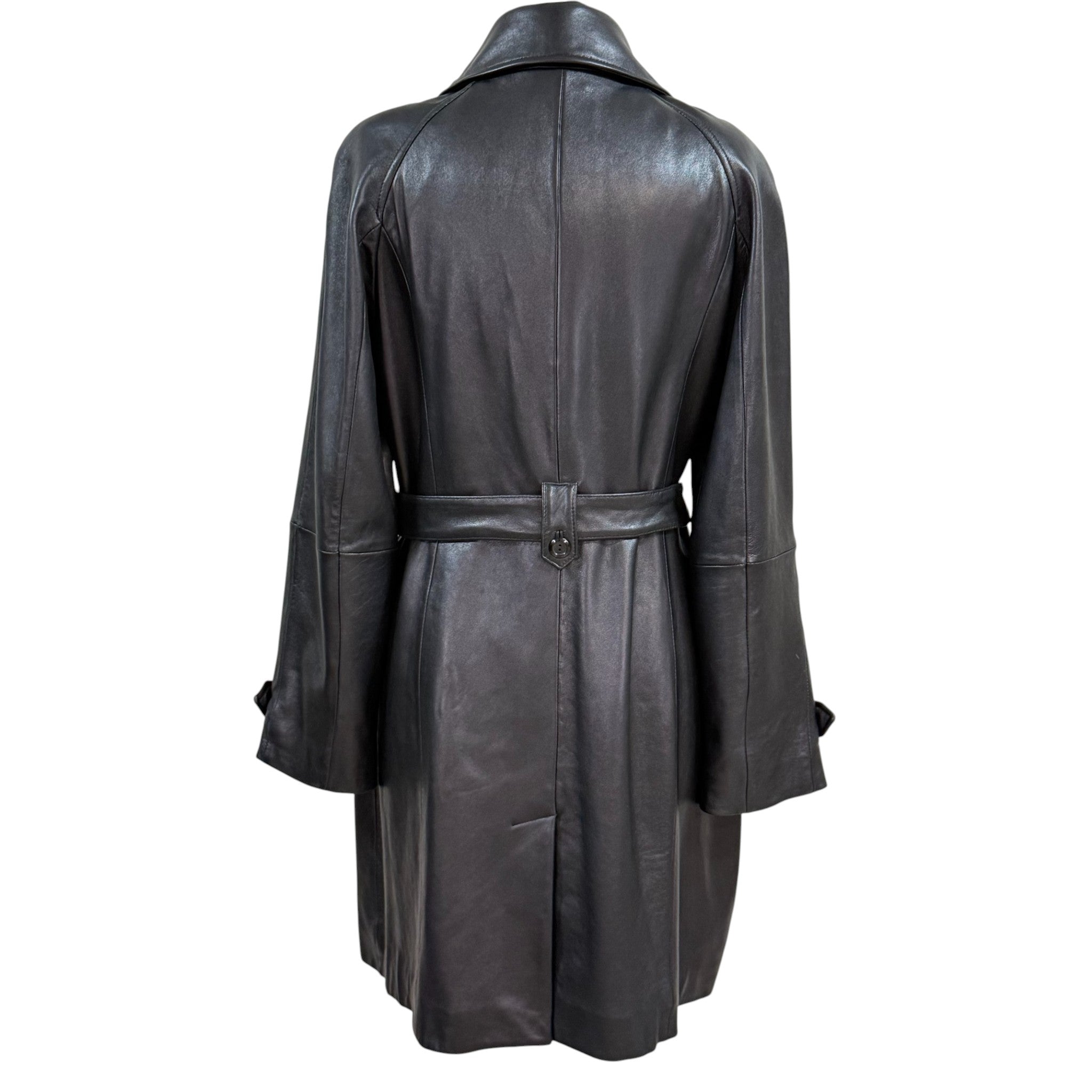 Genuine Lambskin Leather Trench Coat Belted Black Jacket L