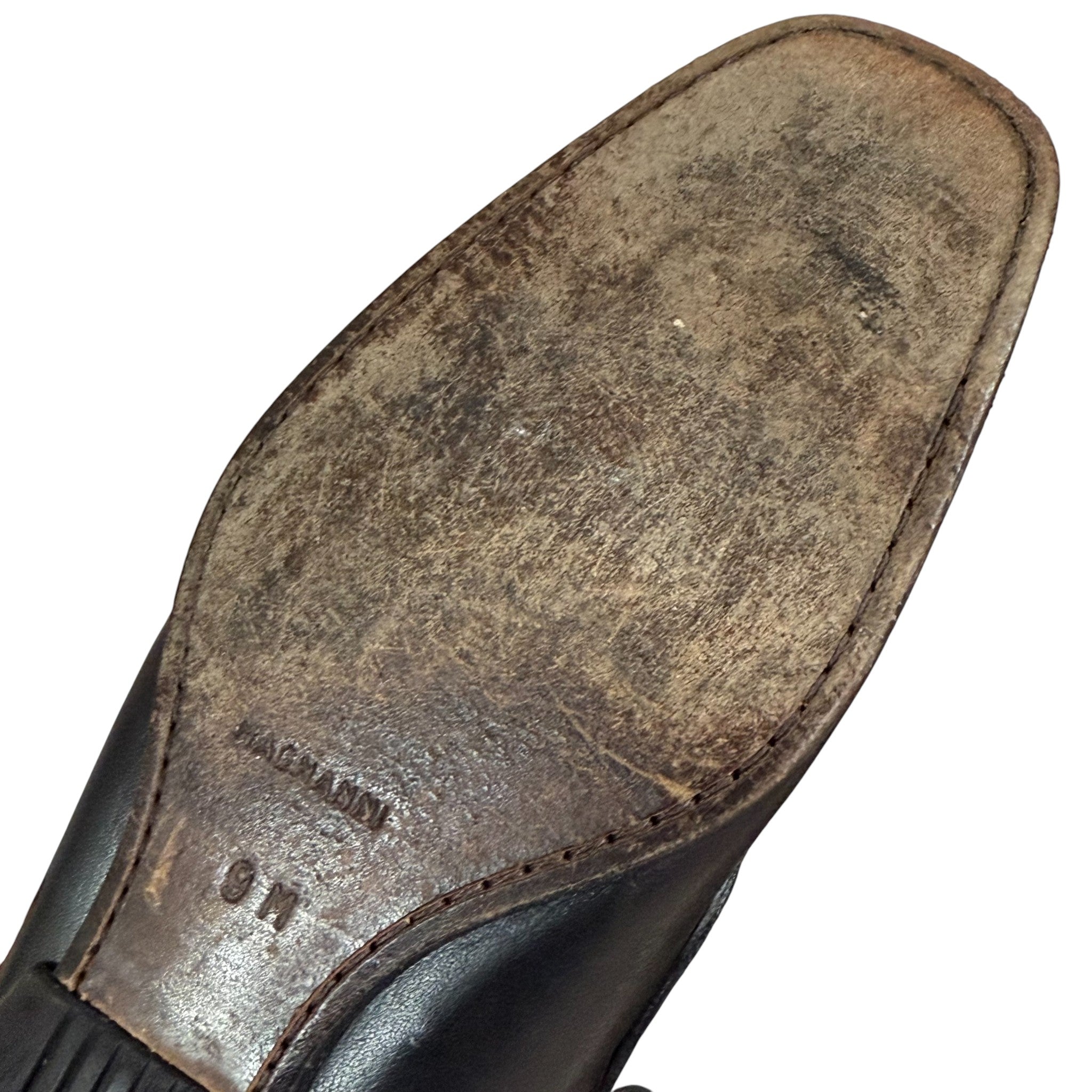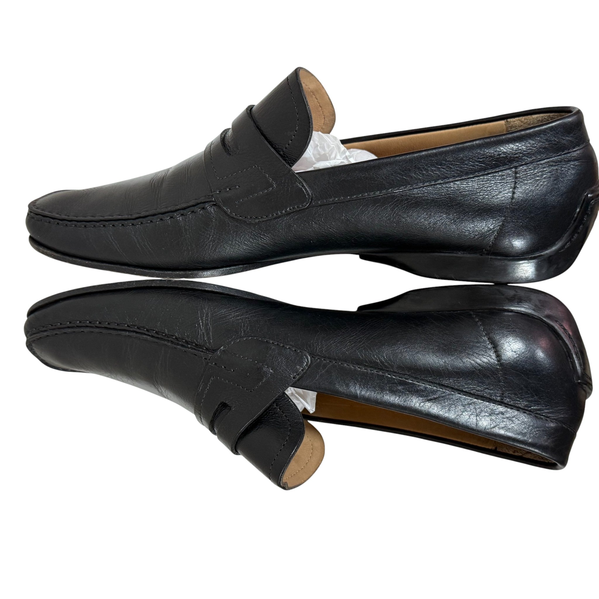 Premium Magnanni for Neiman Marcus penny loafers crafted in supple black leather with a sleek moc-toe silhouette. Hand-finished with Magnanni’s signature European craftsmanship, soft leather lining, and leather outsole with protective rubber heel pad. A refined, luxury essential that delivers effortless sophistication for work, formalwear, or evening occasions.