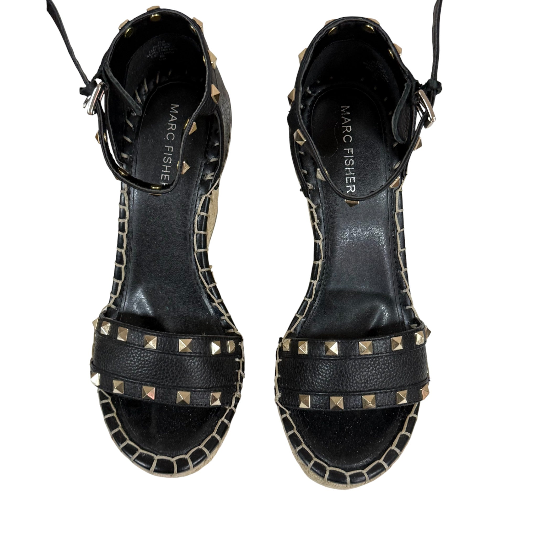 Marc Fisher Black Studded Espadrille Wedge Size 7.5