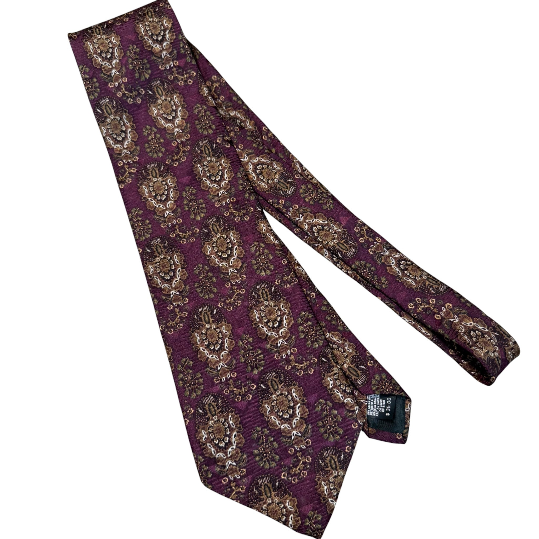 Vintage 1990s The Metropolitan Museum of Art 100% silk tie made in Canada. Features an ornate paisley-medallion pattern in rich burgundy and gold. High-quality museum-gift-shop silk with an elegant sheen. Original price on tag: $35. A collectible design inspired by historic textile patterns.