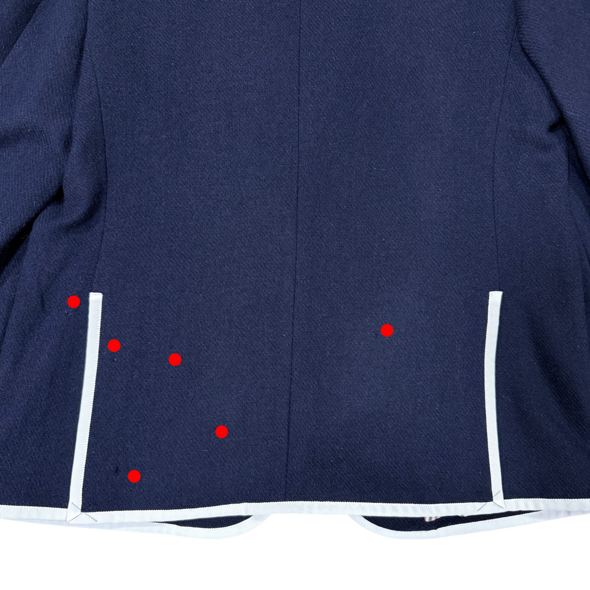 Preowned fair condition. This rare Thom Browne x Neiman Marcus for Target blazer presents beautifully from a distance but has multiple small moth holes (see photos for marked areas). The structure, lining, and buttons remain intact. Ideal for collector display, stylist wardrobe, or repair project. Priced accordingly for condition and rarity.