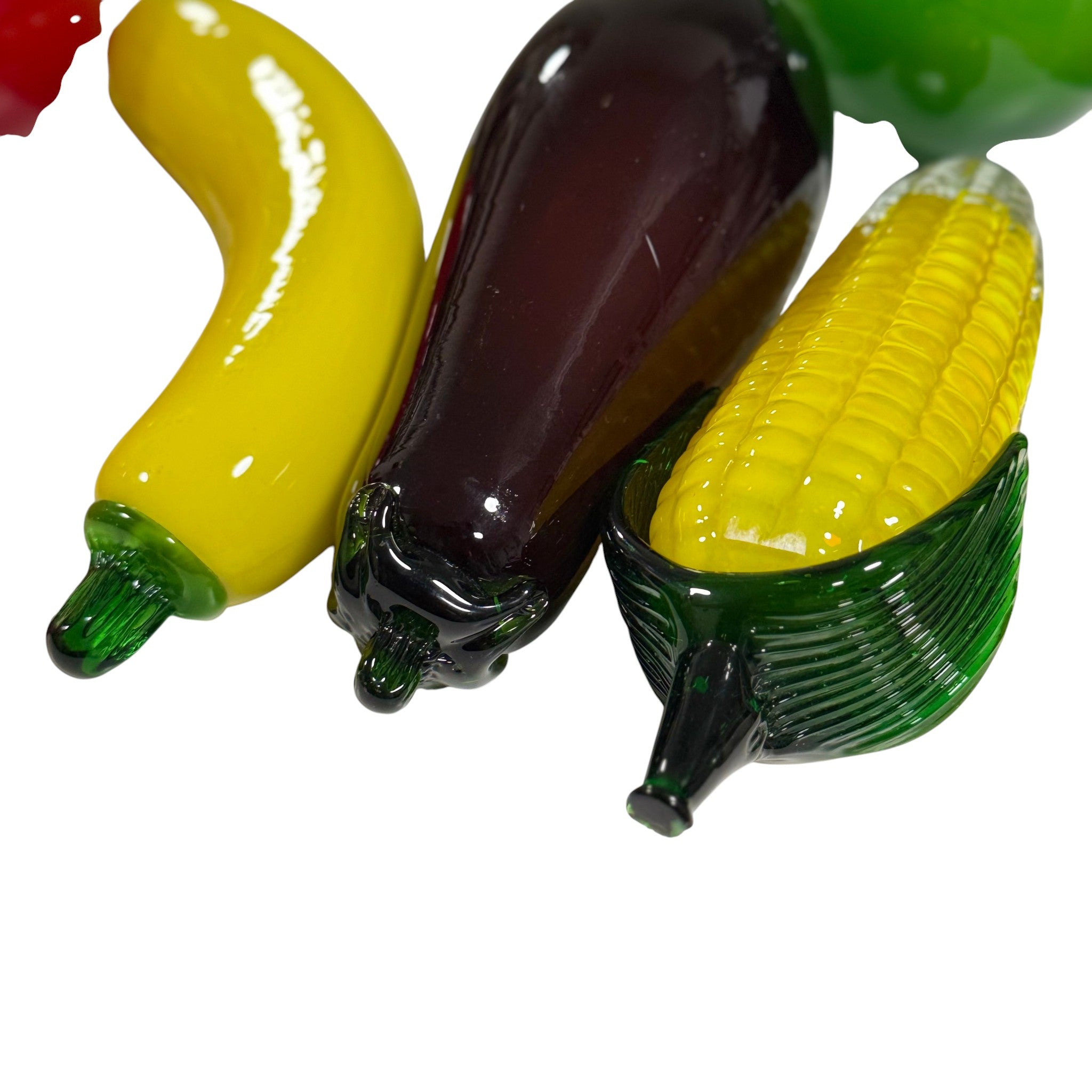 Mid Century Art Glass Veggie Set – Squash Corn Tomato Eggplant Apple -