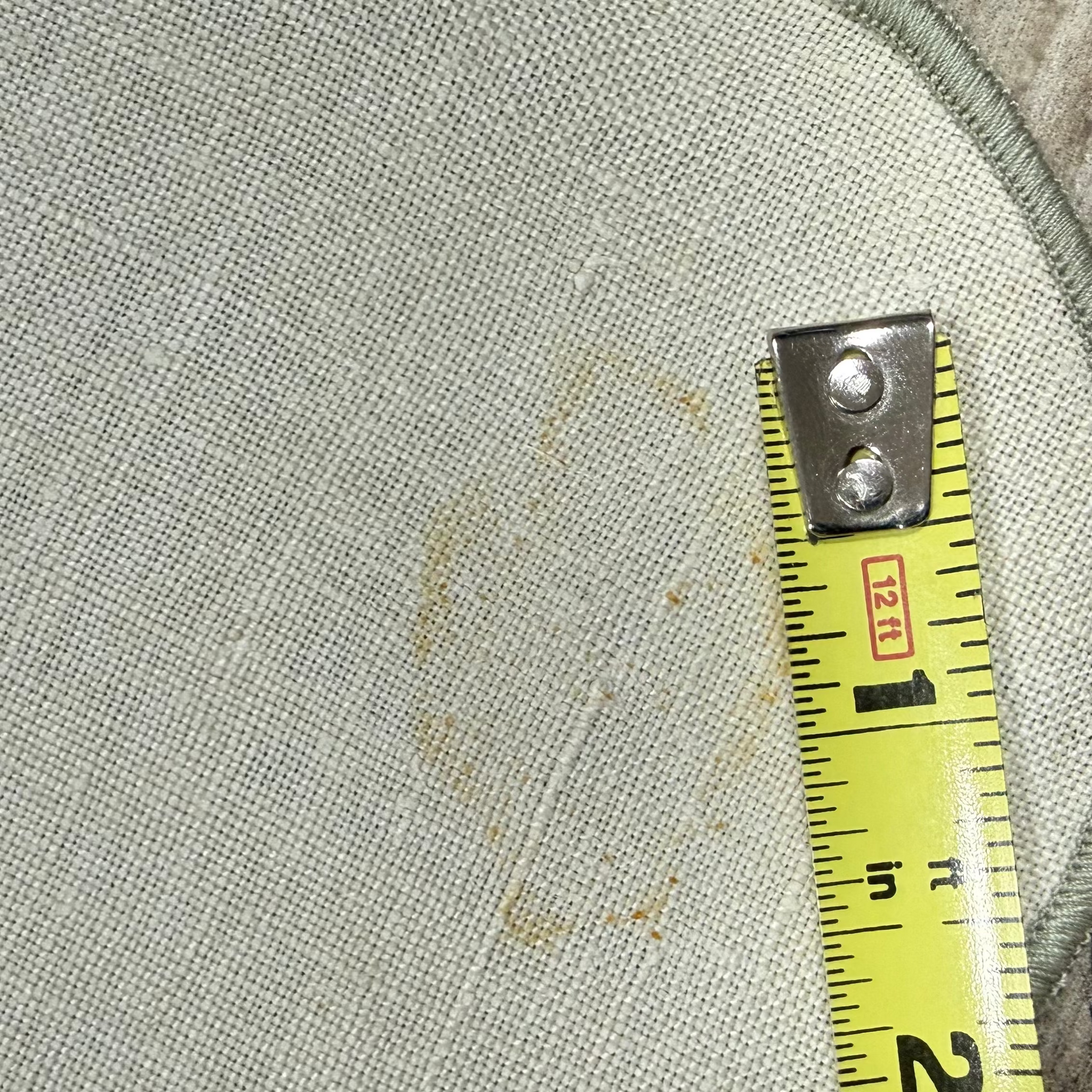 Very good vintage condition. Light age-appropriate creasing from storage. Faint spot shown in closer with measurement.