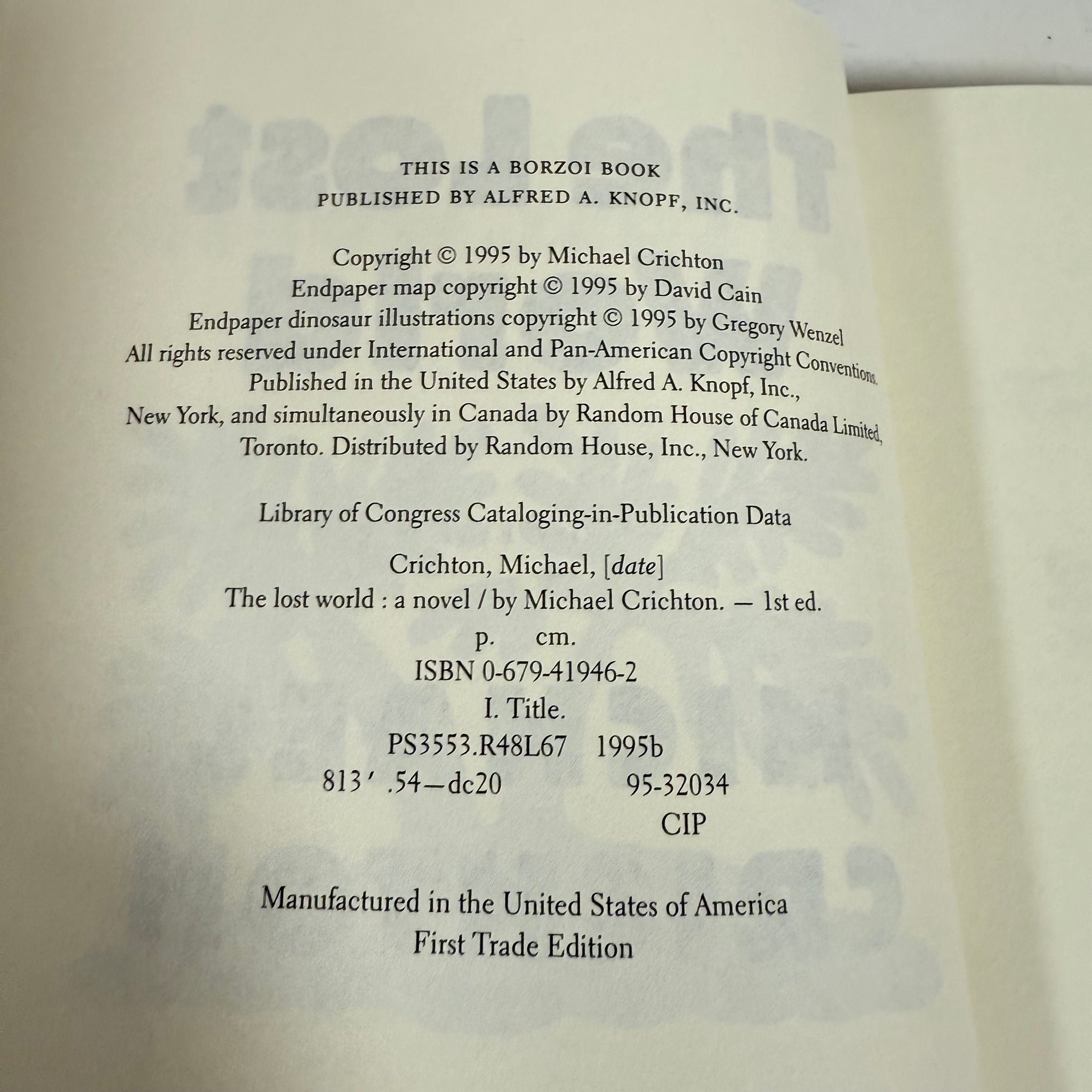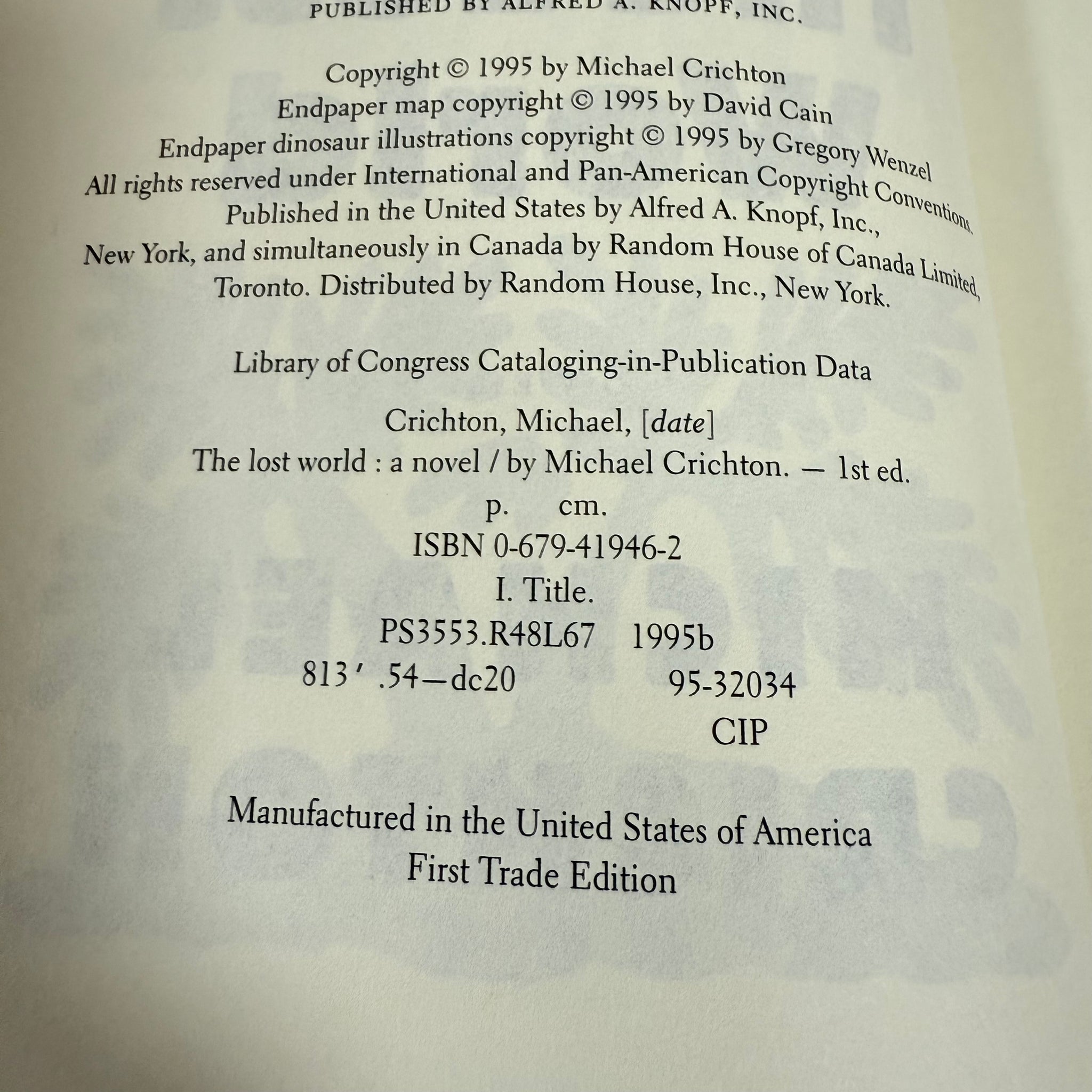 The Lost World True First Trade Edition 1995 by Michael Crichton - Collectible true first trade edition of The Lost World, published by Alfred A. Knopf in 1995. The copyright page reads “First Trade Edition,” indicating the first public printing (preceded only by Franklin Library’s limited run).