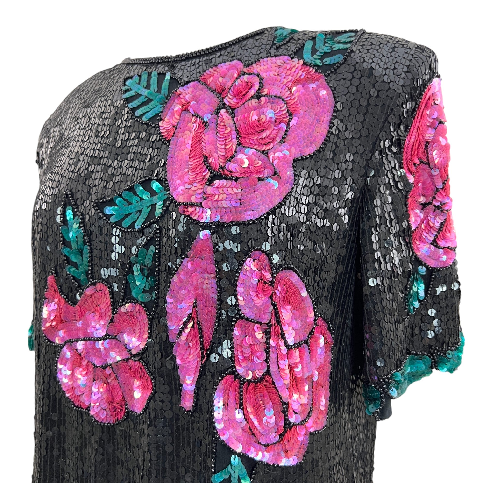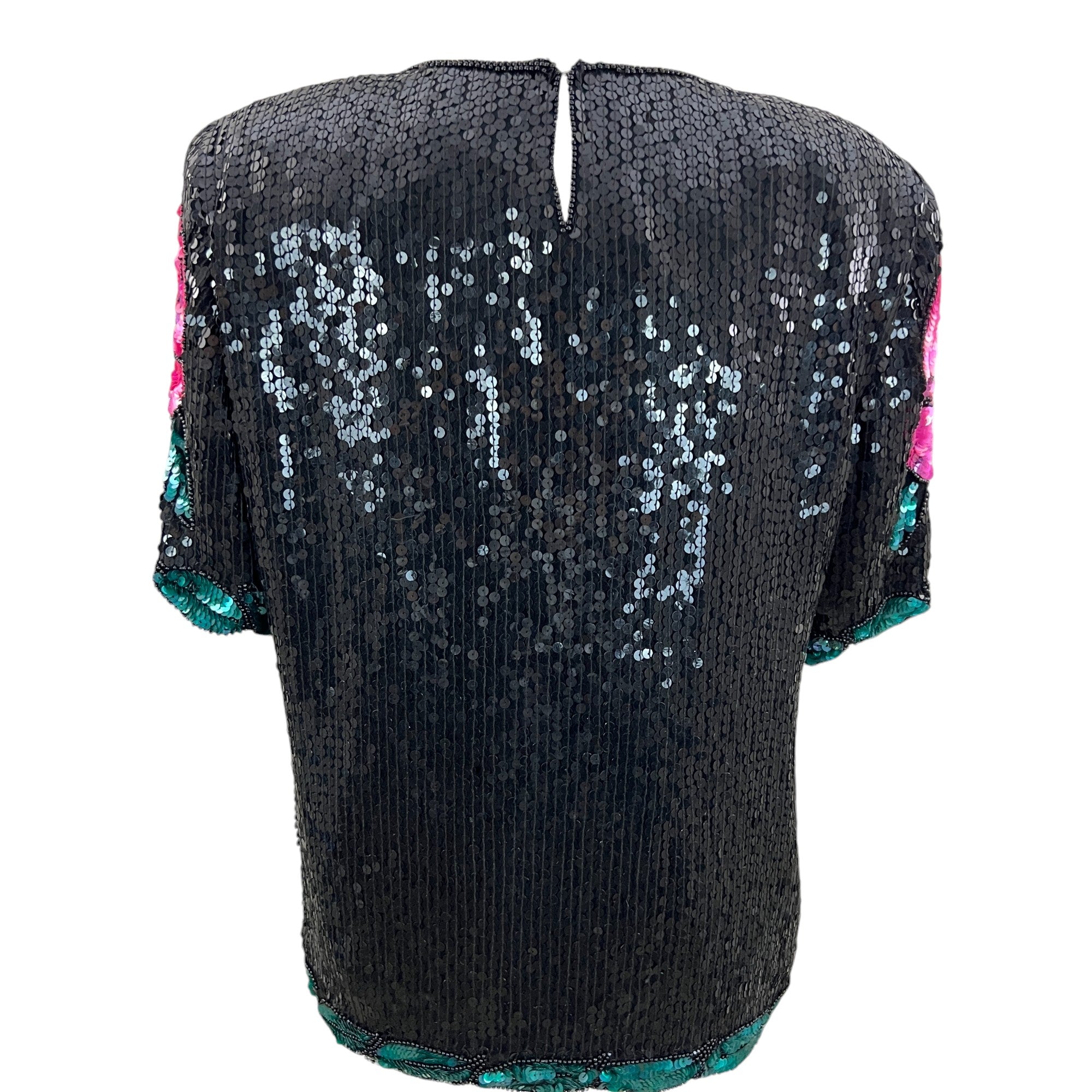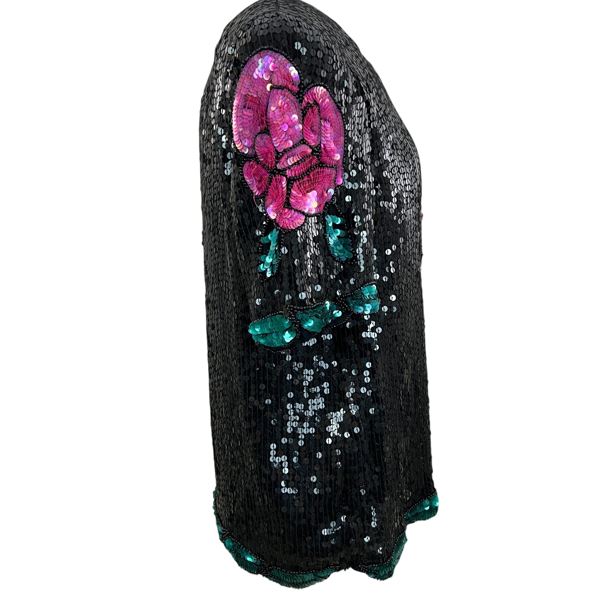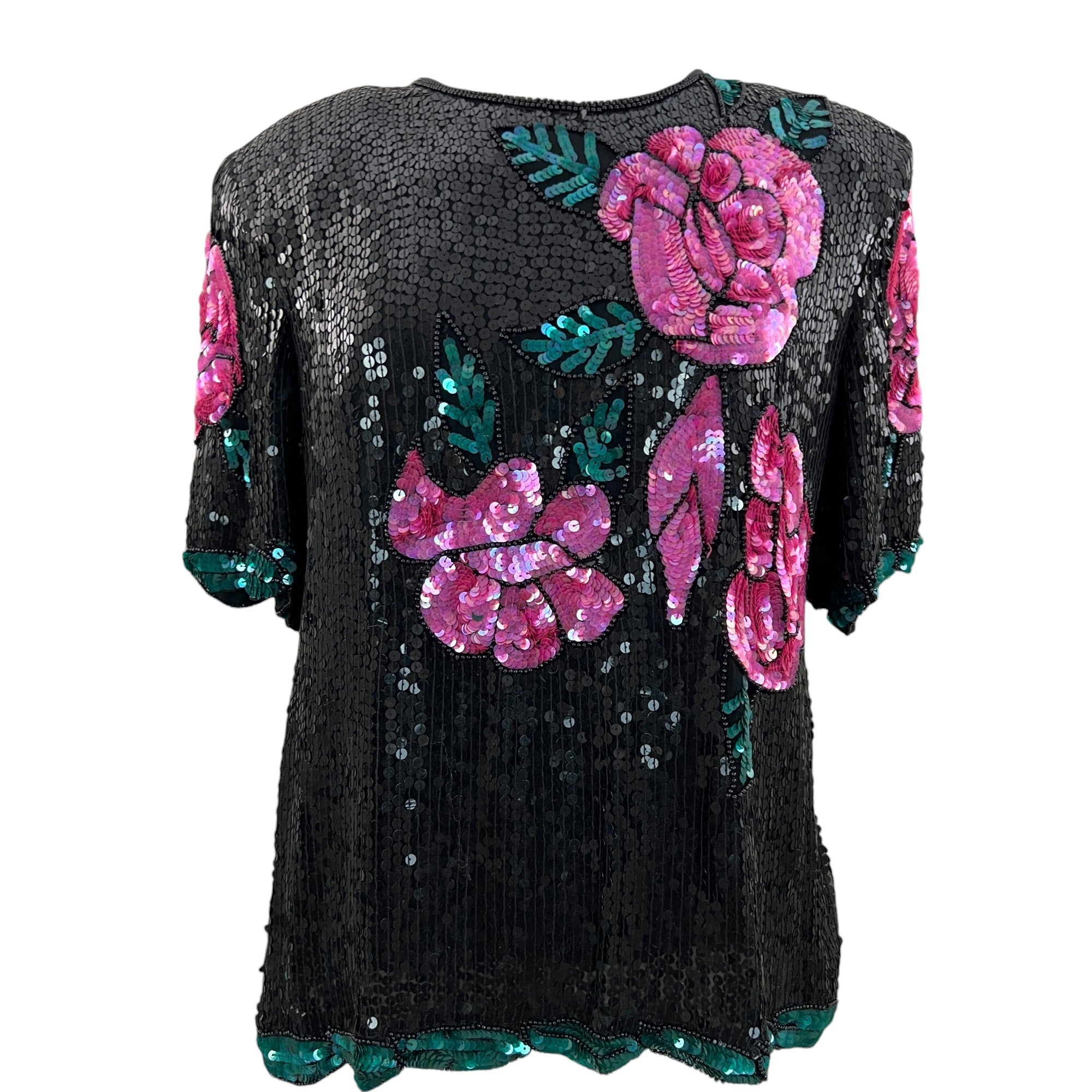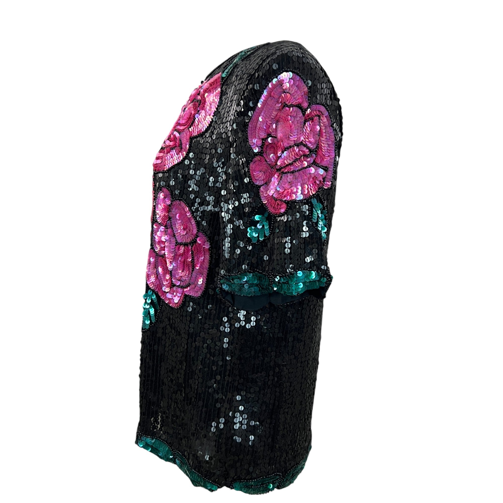 Vintage 80s 100% Silk Sequin Roses Top Size Large