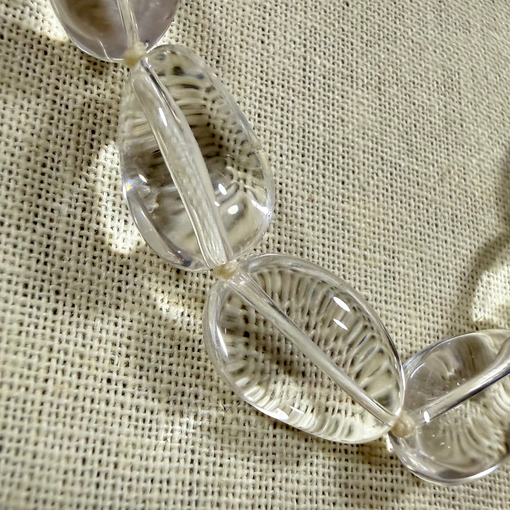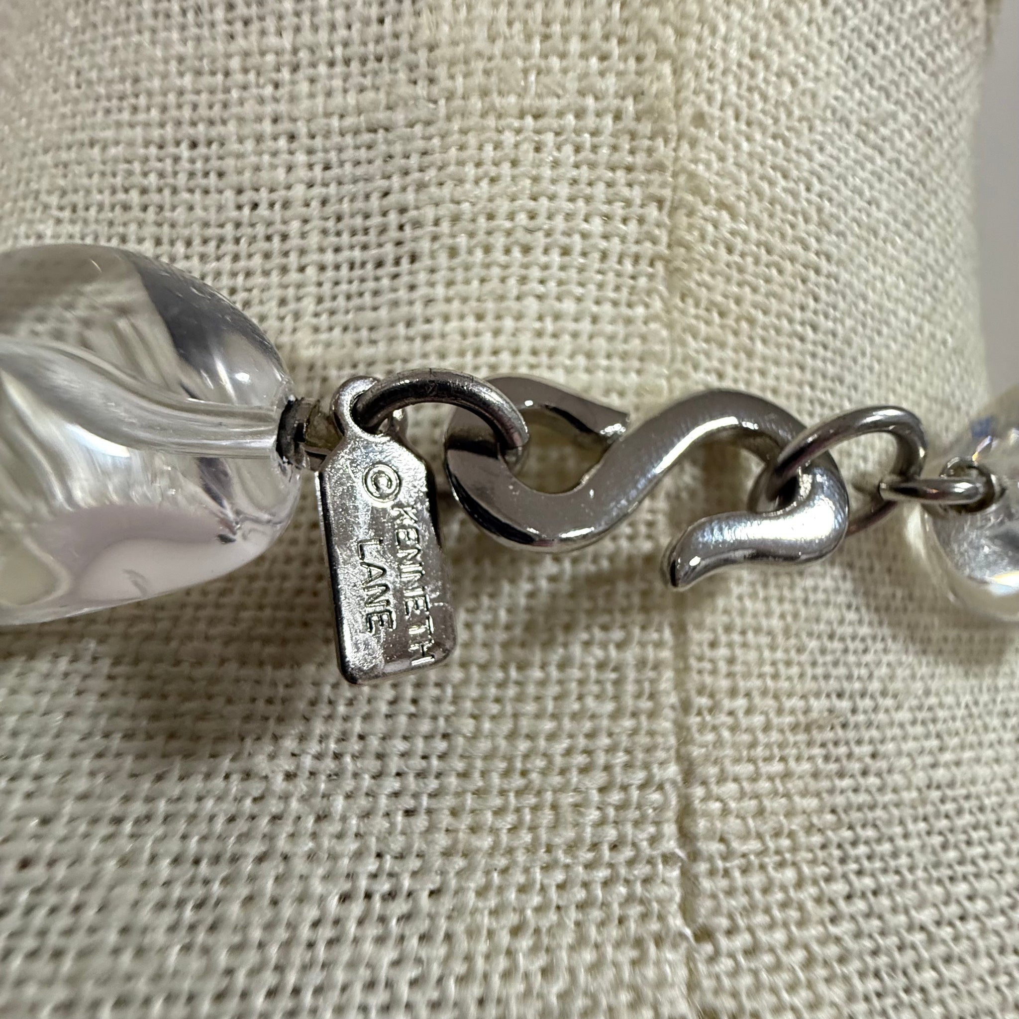 A striking vintage Kenneth Jay Lane statement necklace featuring oversized clear lucite pebble beads designed to mimic natural rock crystal. This sculptural piece showcases KJL’s iconic ability to elevate costume jewelry into wearable art.