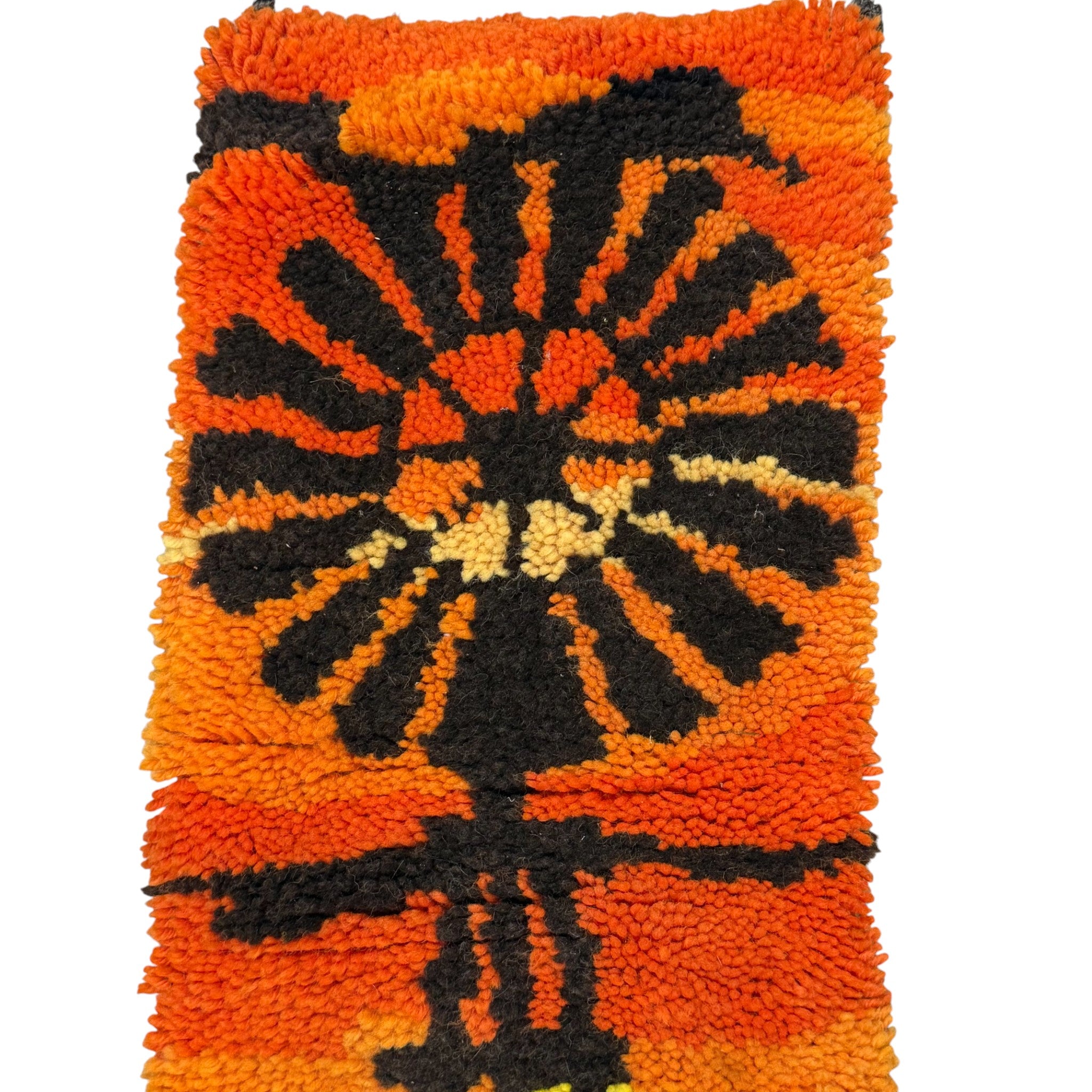 • Handcrafted latch hook textile