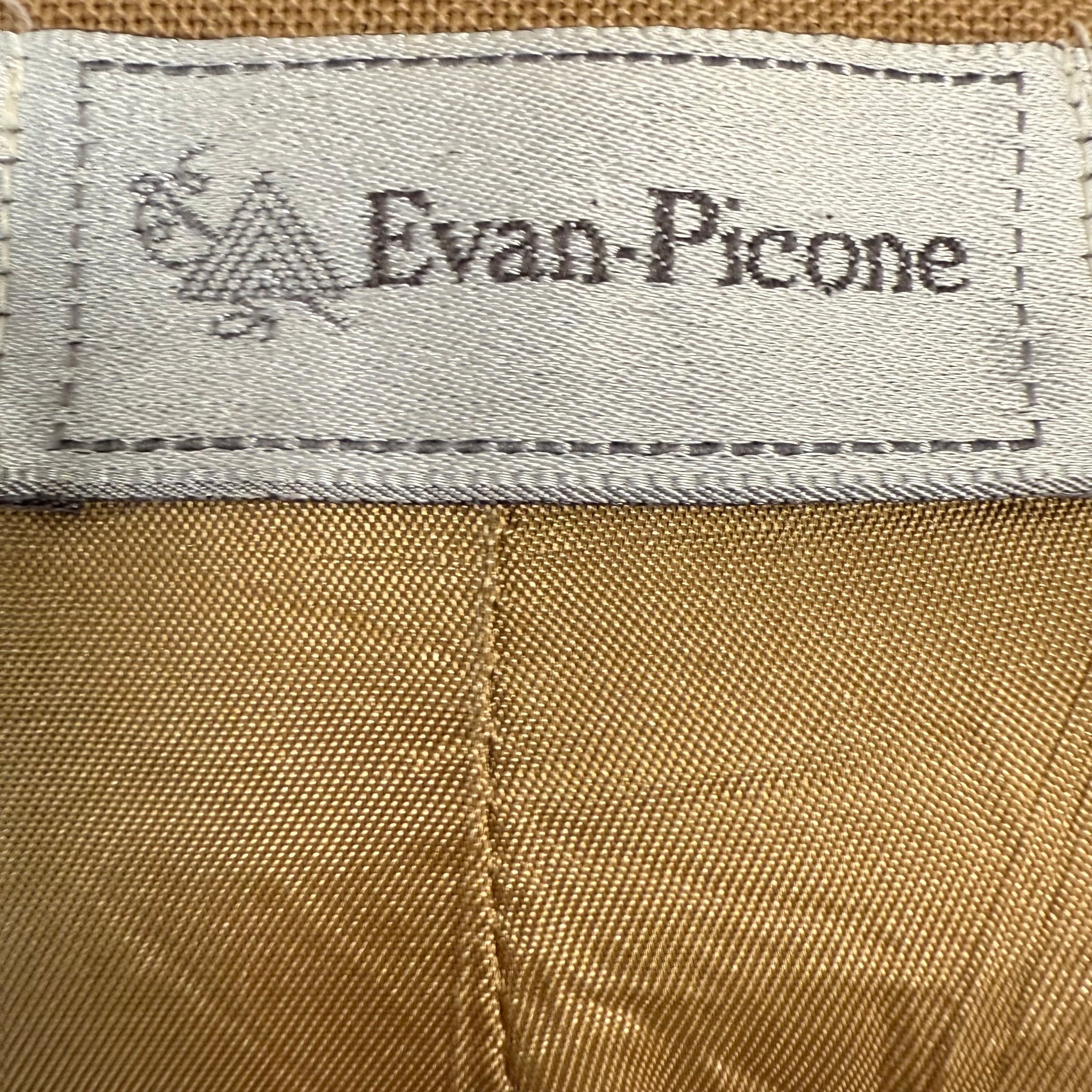 Classic Evan-Picone 1980s structured blazer in a timeless camel hue, tailored for a flattering fit through the waist with light shoulder padding and full lining. Features a notched lapel, two-button front, flap pockets, and a back vent. Made in the USA and union-made by the International Ladies’ Garment Workers’ Union (ILGWU), reflecting quality craftsmanship and mid-century American suiting heritage. The perfect piece for a capsule wardrobe.