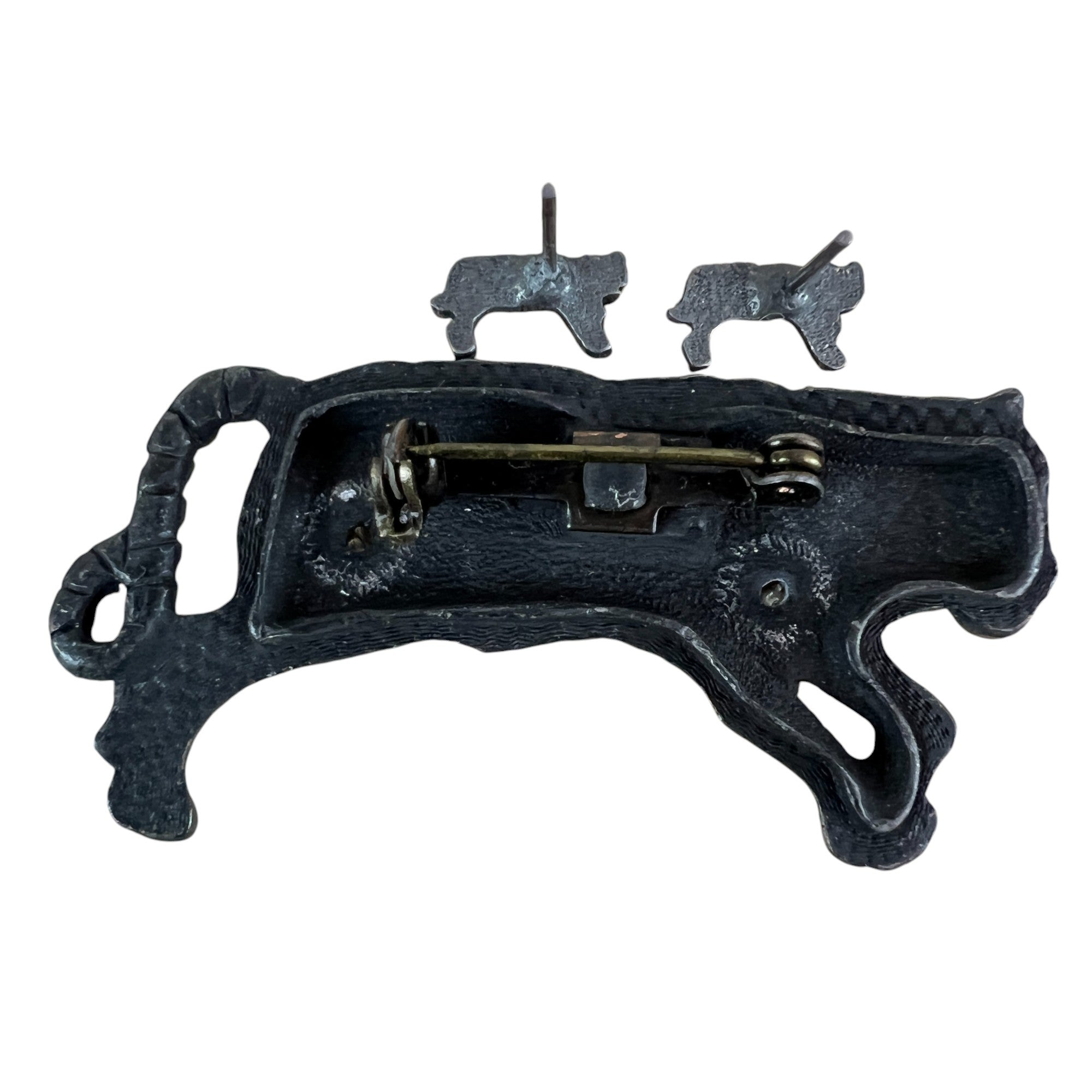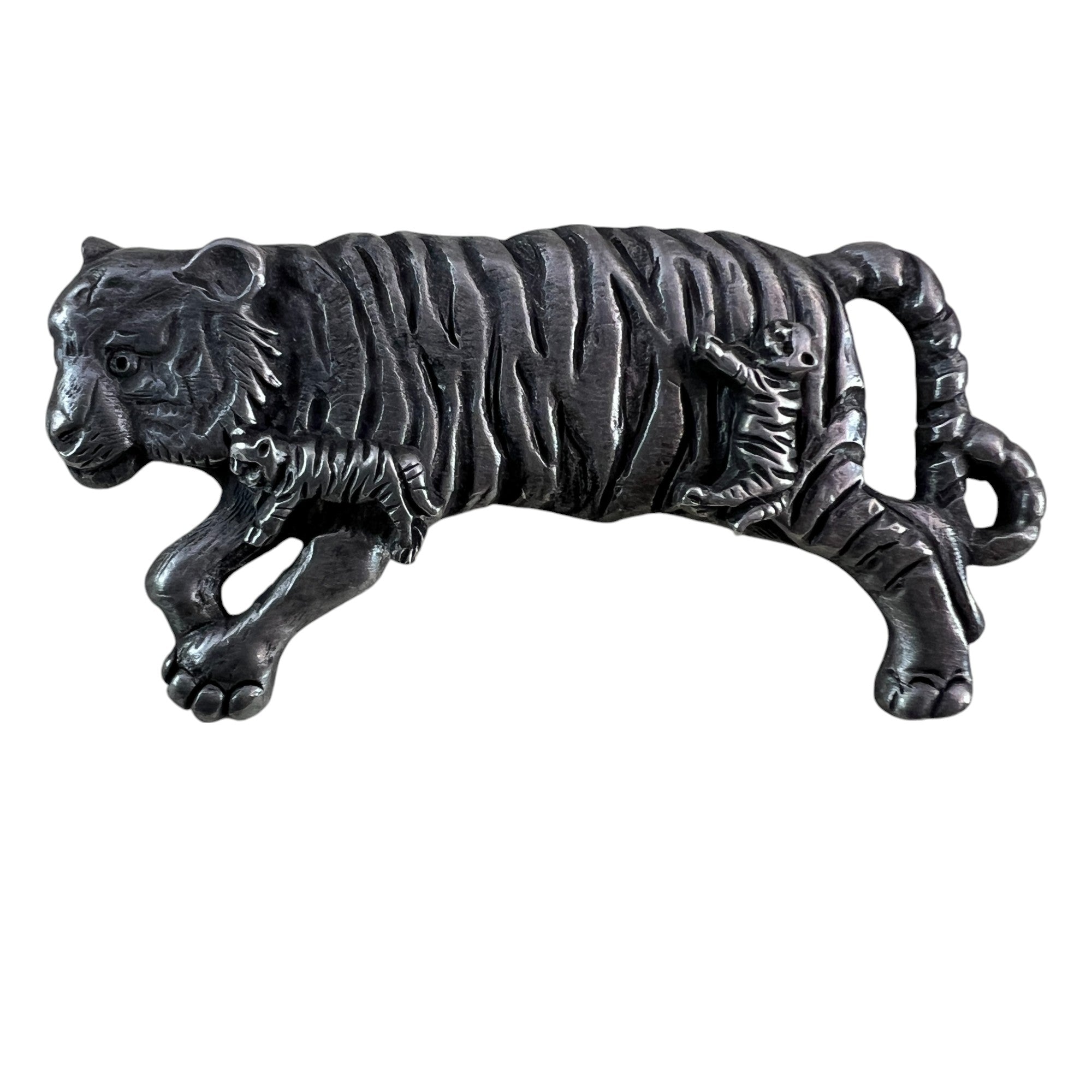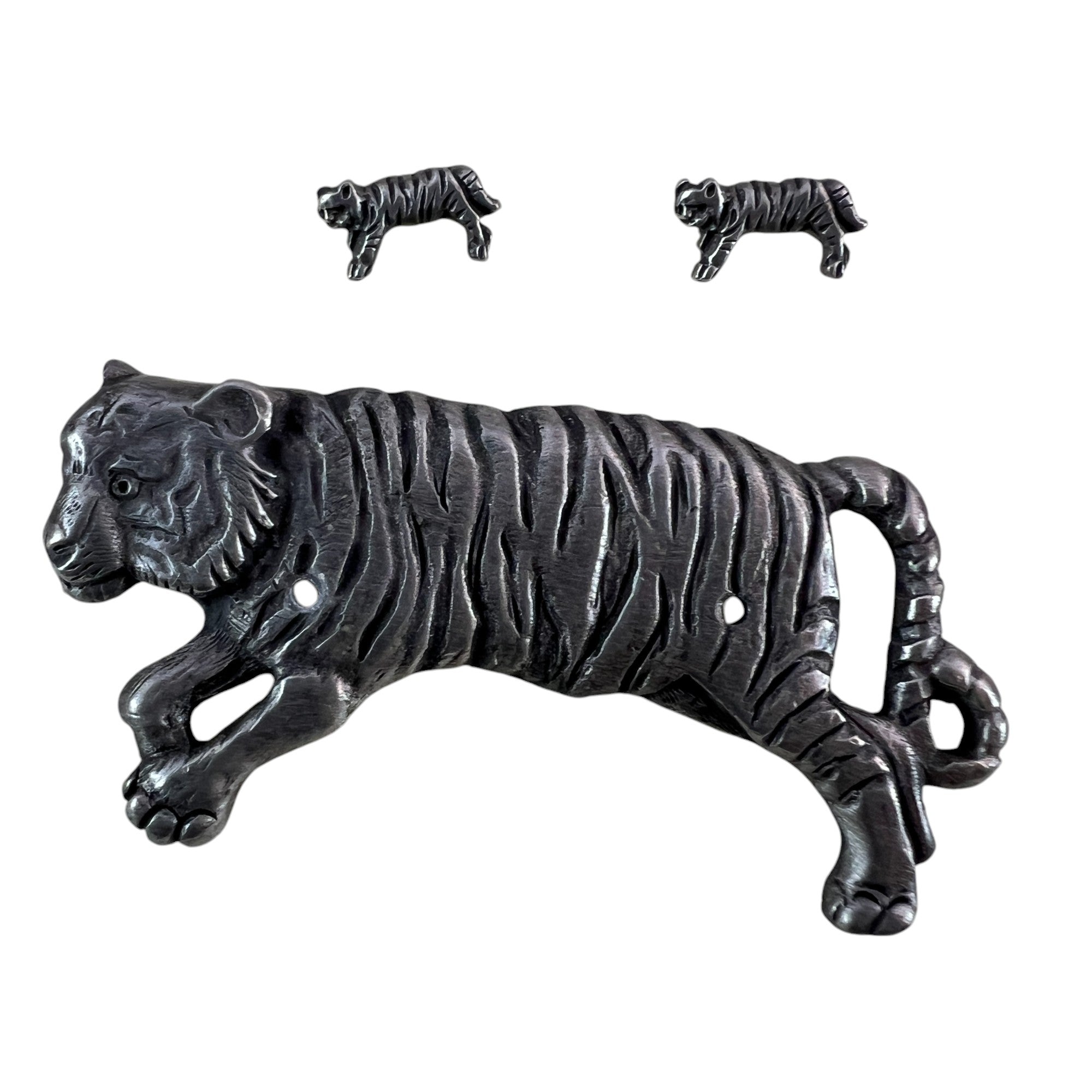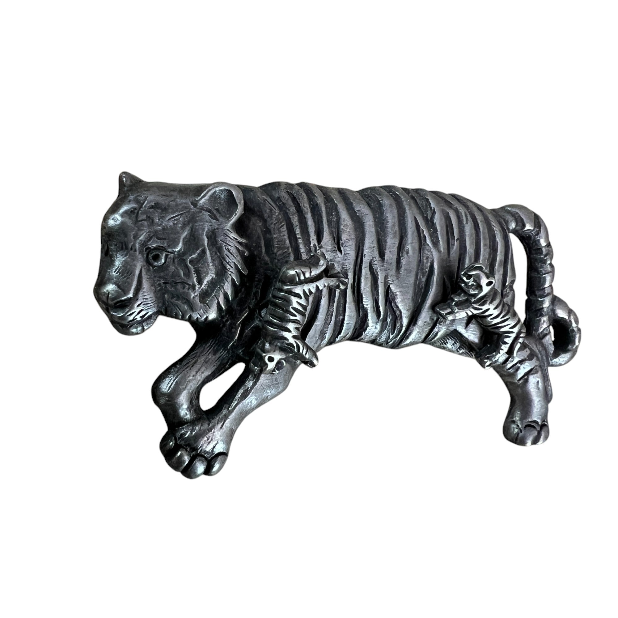Pewter Tiger & Cubs Brooch & Earrings Set - Silver