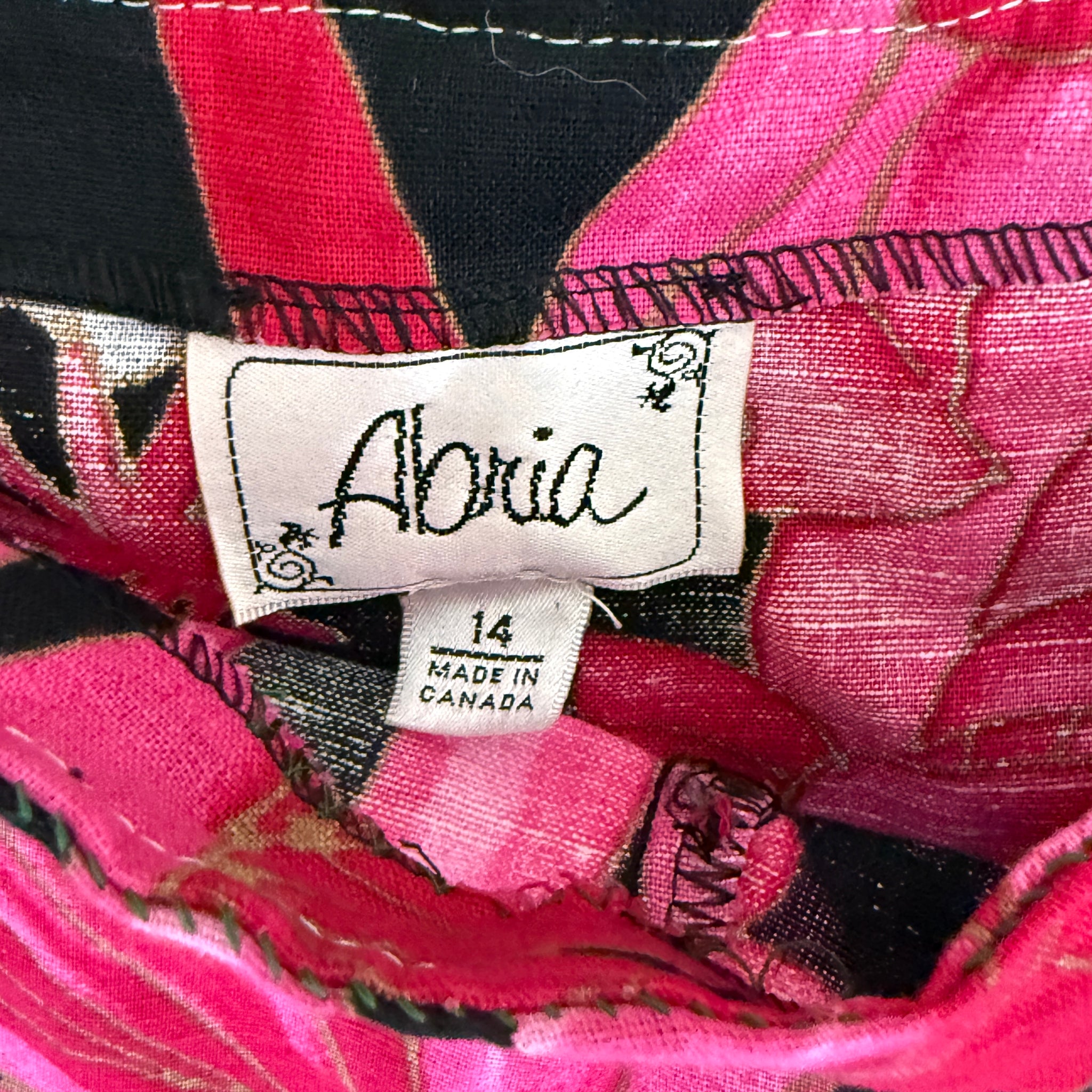 VTG Pink Linen Cotton Floral A-line Midi Skirt Large