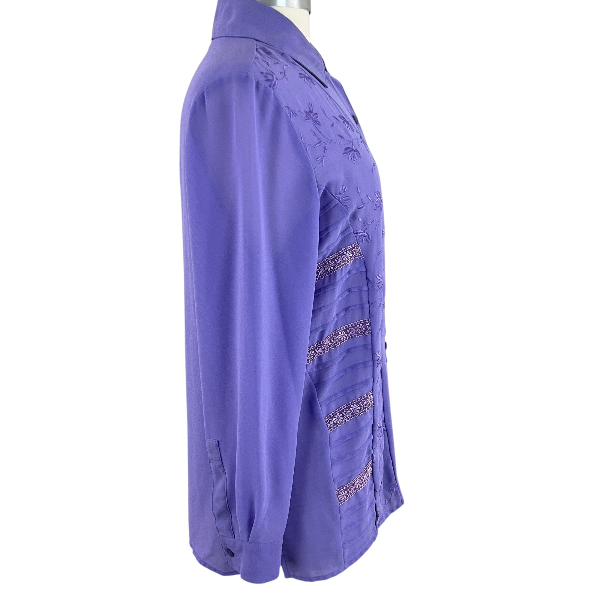 Vintage Lavender Embroidered Button Up Shirt Size M