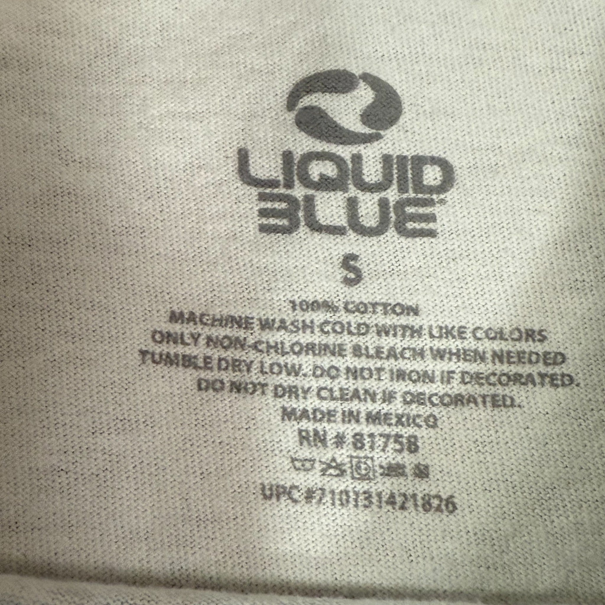 Bold Liquid Blue tiger graphic t-shirt with an all-over blue & orange marble swirl design. Known for vivid prints and high-quality cotton, Liquid Blue tees are favorites among graphic tee collectors.